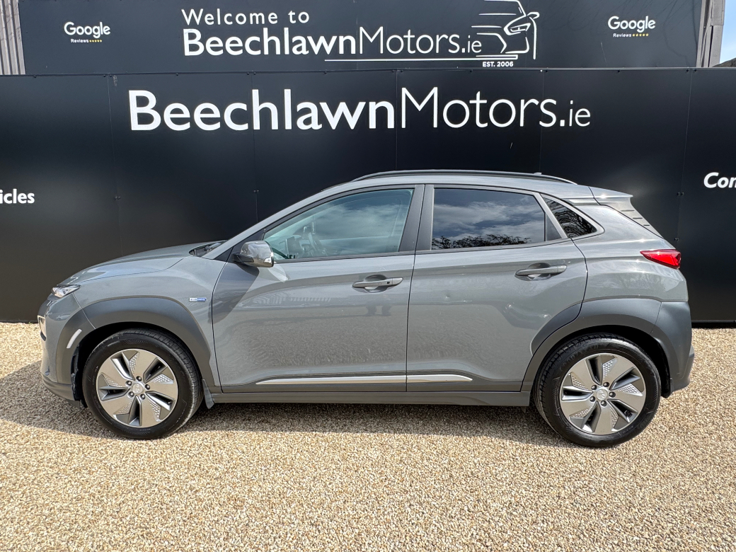 Just Arrived. This spotless 2021 Hyundai Kona EV 64KWH Automatic 150 KW Premium SUV. One previous owner. Documented Service History. 05/27 NCT and €120 Road Tax per Annum. In stunning condition throughout. Very responsive powered by its 150 KW (201 BHP) motor. Efficient to run and a vehicle not to be missed. Anticipated range of approx. 450 KM's depending on driving styles and conditions. The Premium model comes with a host of extras. Leather, Heated Seats, Heated Steering Wheel, Reverse Camera, Sat Nav, Cruise Control, Bluetooth, Auto Lights, Privacy Glass and a Multi Functional Steering Wheel are all standard just to mention a few......................................Its supplied fully serviced, professionally valeted and with a warranty. At Beechlawn Motors Ltd we have over 18 years experience in supplying quality used vehicles. With over 100 Cars and Commercial in stock we have a vehicle to suit everyones needs. (Finance Available on a certain models). Beechlawn Motors Ltd, Unit GA1, Sitecast Industrial Estate, Greenhills Road, Dublin 24, D24 YE2K. Opening hours Monday - Friday 8.00 - 17.00. Saturday 10.00 - 14.00. Closed Sunday. After hours by appointment only. 01-4508514 or 086-8393233.