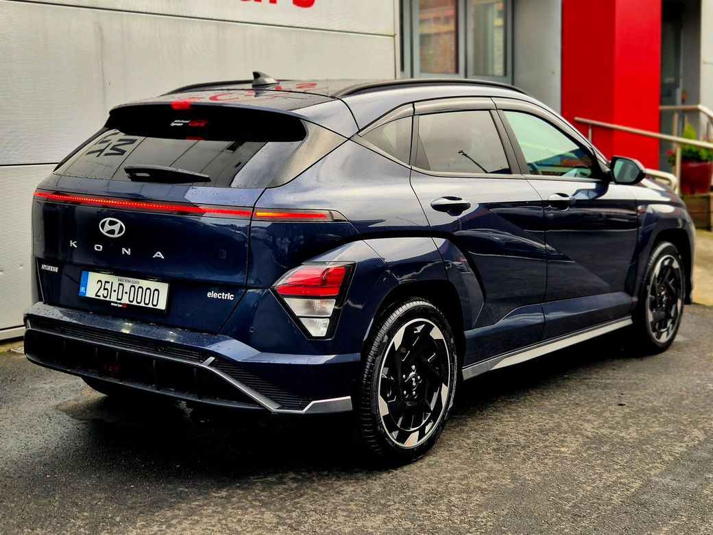 Welcome to Michael Tynan Cars - Conveniently located just off the M50 at Newlands Cross, Naas Road, since 1986. Hyundai Kona N Line 65kWh Auto (Range 400km) Wireless Phone Charger + Heated Front Seats - First Registered October 2025 - Trade in Price €34,888 65kWh - 400km range 17" Diamond Cut Alloys, Automatic Transmission, Paddle Controls, Privacy Glass, Grey Fabric Upholstery, Heated Seats, Heated Steering Wheel, CarPlay / Android Auto, Reverse Camera, Bluetooth Connection, Touch Screen, Adaptive Cruise Control, Climate Control, Parking Sensors. Push Button Start, Electric Heated Door Mirrors, Retractable Door Mirrors, Auto Dimming Mirror, Rain Sensing Wipers, Lane Departure, Roof Rails, Traction Control, LED Daytime Lights, Comprehensive Warranty. Whilst we endeavour to be accurate with all the details and specifications listed, errors can and do happen. Please confirm to your satisfaction the specification of the car you are interested in before putting down your deposit. Specification differences noted afterwards cannot be rectified. Low Rate Finance Available. Part Exchanges Welcome. Best Price Given on Inspection. Quality Cars at Affordable Prices with the Lowest Cost to Change. Thank you for viewing. FULL MAIN DEALER FACILITIES Authorised Service Agent for Kia & Mitsubishi, Family Run Business, Established 1986, SIMI Member, AA Approved, Finance Arranged, Trade Ins Taken, All Cars Fully Serviced, All Cars Fully Valeted, All Cars History Verified, All Cars Warrantied. CHECK OUT OUR REVIEWS ON GOOGLE & FACEBOOK. CALL TODAY TO ARRANGE A TEST DRIVE 01 403 6700.