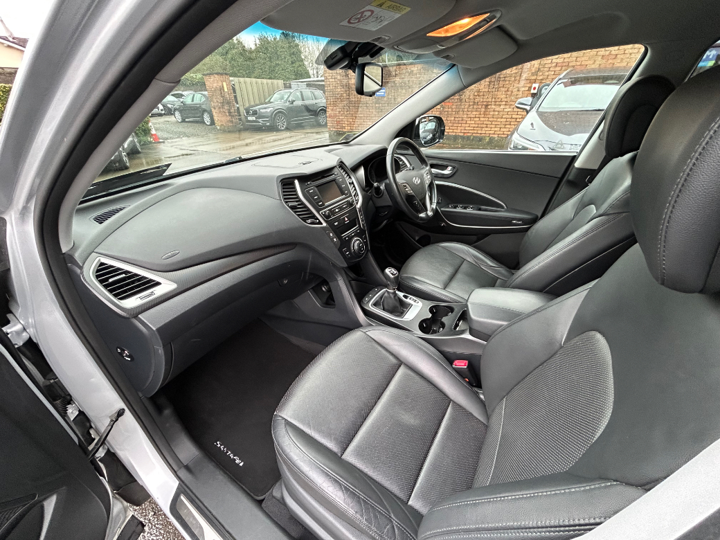**ONLY TEN MINUTES FROM BLANCHARDSTOWN SHOPPING CENTRE** 2017 Hyundai Santa Fe 2.2D Executive 7 seater 4WD in excellent condition throughout. Original Irish car with an excellent service record, very low kms and great spec to include: upgraded alloy wheels, xenon headlights, front foglights, electric windows & mirrors, folding mirrors, parking sensors, reverse camera, full leather upholstery, heated & electric front seats, sport seats, ambient lighting, bluetooth telephone system, sat nav, aluminium dash inlays, cruise control, media control unit, front centre armrest, sport seats, climate control with A/C, leather multifunction sport steering wheel, abs, isofix, esp, multiple airbags etc. For further information, please contact Barry on 01 8017777 / 086 3358879.