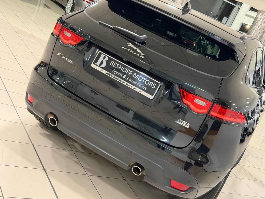 Beshoff Motors is proud to present this high specification 2019 Jaguar F-Pace 25T (300 BHP) R-Sport AWD Auto with only 53,000 miles from new and a full service history including its most recent service which has just been completed along with four new tyres. Presented in Santorini Black Metallic with a complementing DuoTone Ebony and Pimento Windsor Leather Interior with a host of features including... - R-Sport Specification - Upgraded Gloss Black R-Design Alloy Wheels - Rear Privacy Glass - Keyless Start - LED Headlights & Daytime Running Lights - Parking Assistance System with Sensors Front and Rear - Electric Tailgate - Cruise Control - Heated Front Seats - Touch Screen Entertainment System - Jaguar Satellite Navigation System - Voice Command - Jaguar Integrated Phone System - Bluetooth Connectivity - Leather Multifunctional Steering Wheel - Extended Leather Dash, Door Cards and Centre Console - Suede Headlining - Aircon with Dual Zone Climate Control - Auto Lights and Wipers and much more... This is a 191 Dublin registered example presented in showroom condition awaiting its next cherished ownership. Welcome to Beshoff Motors where our family name has been a name in the motor trade worldwide for over 50 years. Our Dealership is a family run business that was founded by Jeremy Beshoff in 2009 who today runs the business alongside his sister Natassja. We specialise in supplying in Sports, Luxury, & Performance vehicles which are prepared to the highest standards. We spend a great amount of time and effort in keeping track with the market and ensuring the price of each of our vehicles is reflective of its rarity, specification, mileage and condition. Our business model which is reliant on turning stock quickly means that we are only interested in stocking vehicles that are priced to sell. When it comes to financing your purchase we have fantastic relationships with a variety of funders giving us privileged access to some of the best finance packages on the market. We pride ourselves on being able to offer very competitive finance rates and finding a bespoke solution to suit individual needs in order to help fund the purchase of your next car in the most cost effective manner. We have two different types of finance agreements to include Hire Purchase & Personal Contract Purchase. Though we always prefer to take in part-exchanges that we would retail here at Beshoff Motors, we are happy to consider all part-exchanges and due to our fantastic relationships with a network of dealerships we will ensure we get the very best price for your car. Come to browse our current stock in our indoor showroom’s located on the Grange Road, Baldoyle, Dublin 13 which is open 6 days a week from 9am-6pm Monday-Friday & 10am-2pm on Saturday’s. If these times don’t suit you schedule, contact our sales team to arrange a virtual or a physical out of hours appointment to suit you.. ##320582