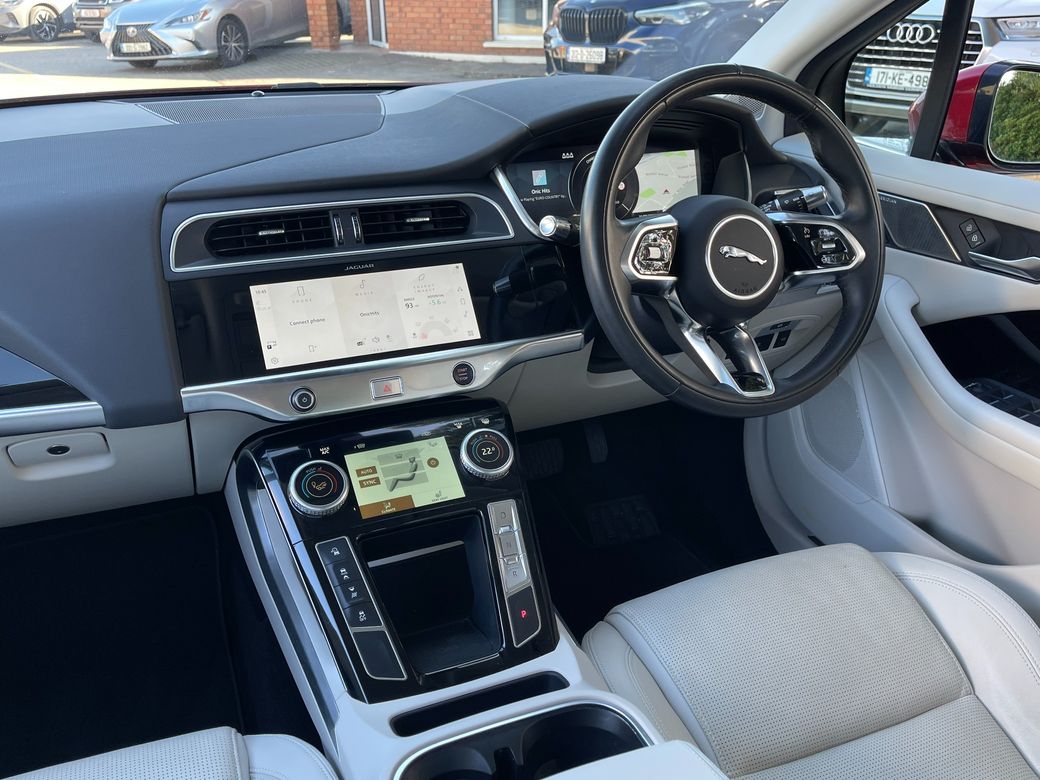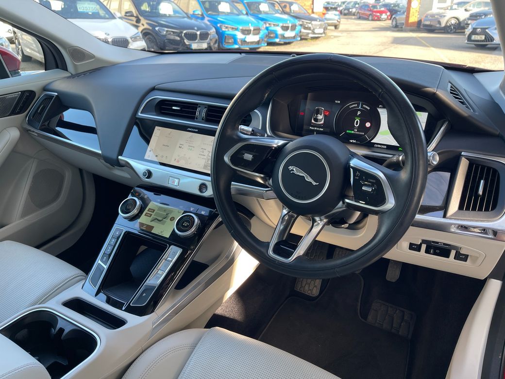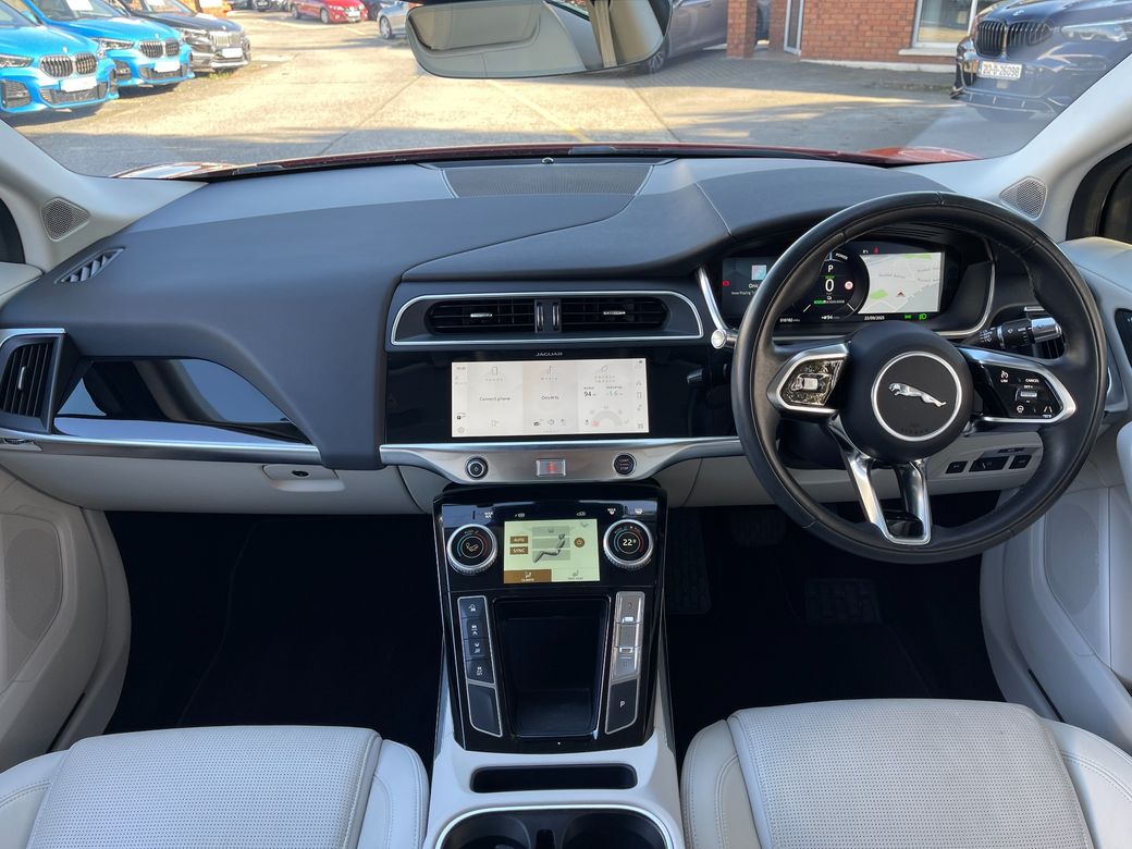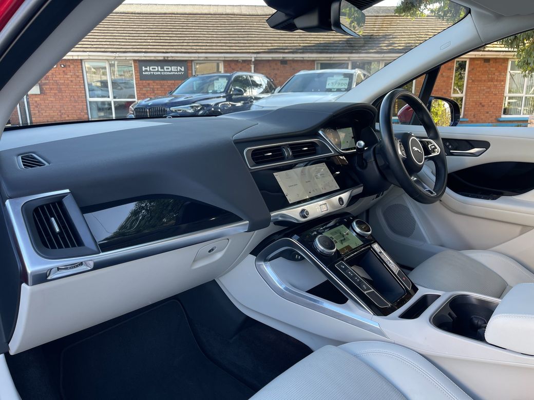 A stunning 2021 Jaguar I-PACE finished in red with just 10,200 miles. This premium electric SUV delivers cutting-edge technology, luxury comfort, and exhilarating performance. Key Features: Exterior & Access * Low mileage: 10,200 miles * Keyless entry * Power-folding mirrors * Electric tailgate (boot) Interior & Comfort * Premium cream leather interior * Electric front seats with memory * Heated front seats & heated steering wheel * Heated windscreen * Multifunctional steering wheel * Dual-zone climate control air conditioning * Meridian premium sound system Driving & Safety * Cruise control with voice control * Automatic headlights * Auto hold & start/stop button * Digital driver dashboard * Tyre pressure monitoring system * Different driving modes including launch control * 360° surround-view camera with park assist * Lane assist Technology & Infotainment * Central touchscreen multimedia system * Satellite navigation (Sat Nav) * Bluetooth connectivity * Apple CarPlay & Android Auto This 2021 Jaguar I-PACE combines luxury, performance, and electric innovation, making it an ideal choice for those seeking a premium EV SUV with standout style and technology. Here at Holden Motor Company we are a family run business with a friendly and knowledgeable sales team. We stock a wide range of over 100 carefully selected premium used cars all sourced directly from main dealerships here in Ireland & the Uk. We aim to supply all our cars at the most competitive prices in the country. Extended warranty available on certain makes and models. Delivery can be arranged throughout the country. Each of our retail cars comes with a detailed history report and fully serviced or health checked by a network of independent mechanics, a valid NCT and valeted prior to collection. Tailored finance packages available. We are open 6 days a week. For more information on our cars please contact our sales team on 01-4604434/0870923236 or email sales@holdenmotorcompany.ie Due to a high turnover in stock we recommend that you contact our sales team to make sure the car is still available and to make an appointment.