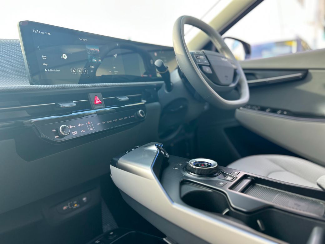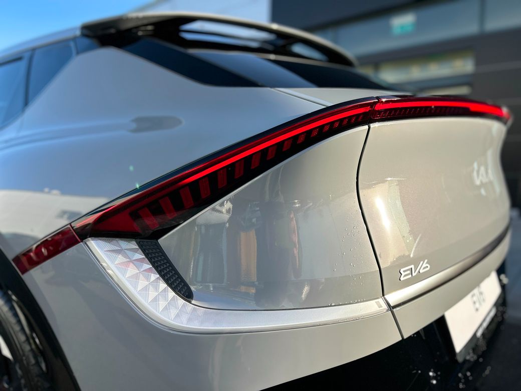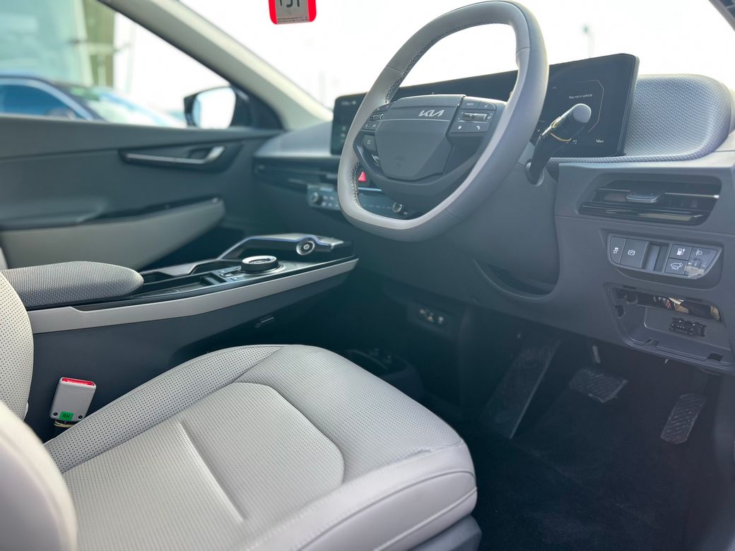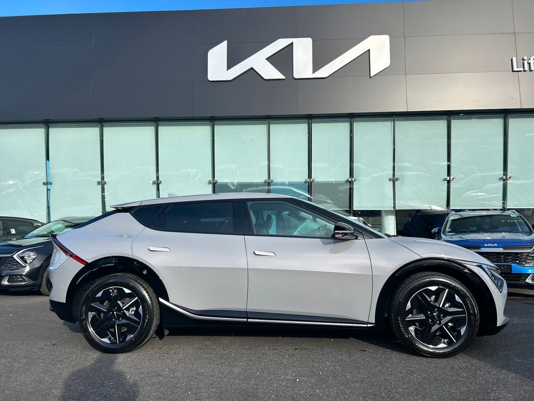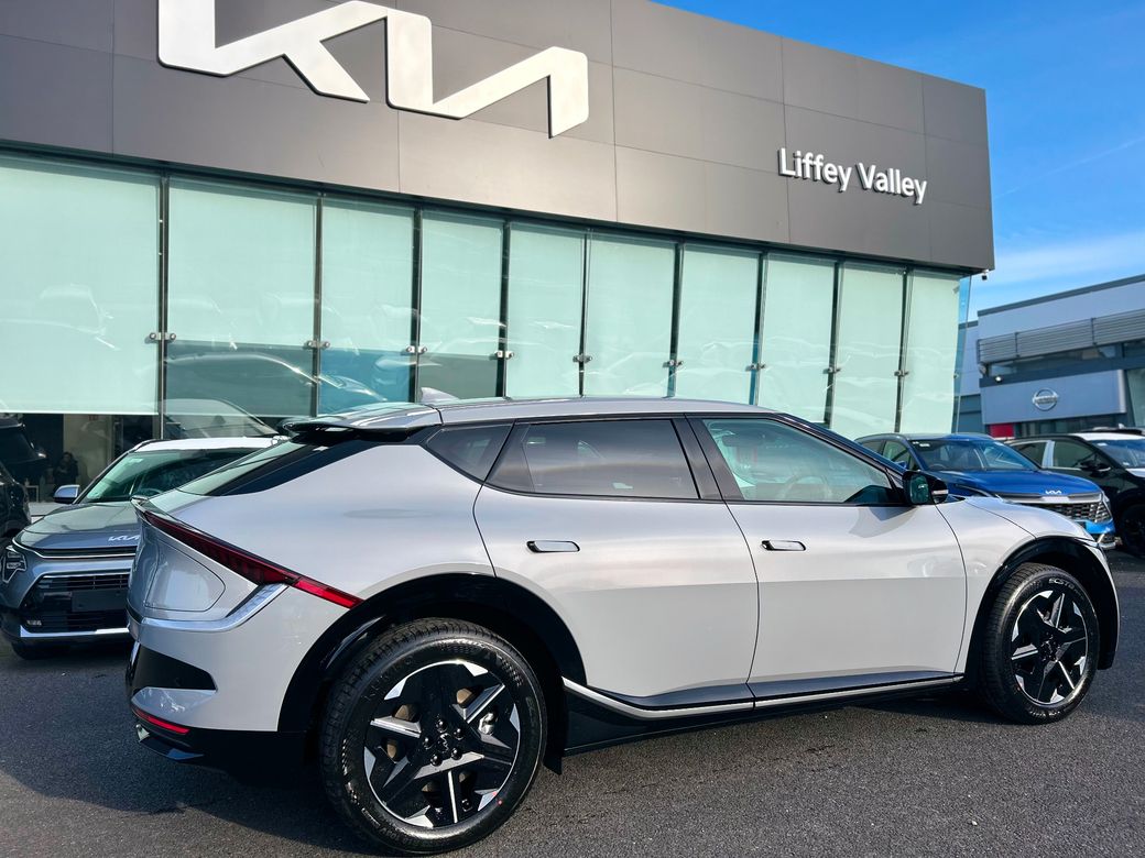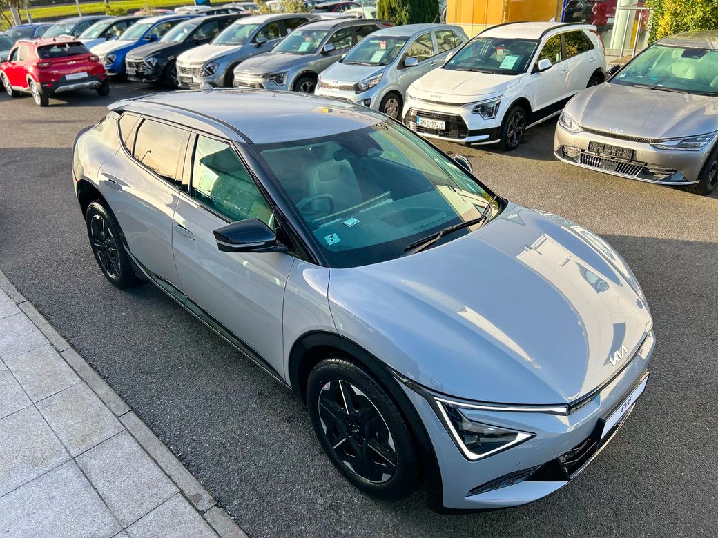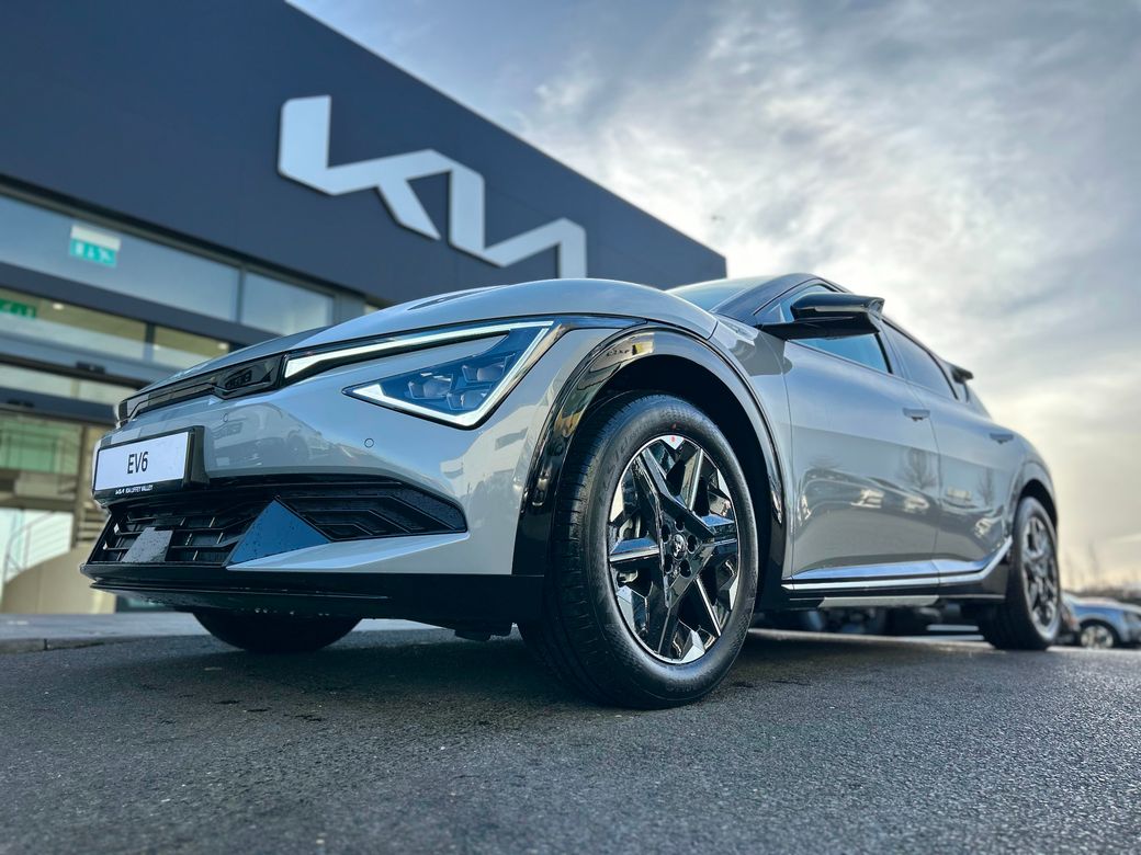 Kia EV6 Earth ( Free Home charger) Presented in Wolf Grey metallic. Features include 19" Alloy wheels, Privacy rear glass, Adaptive LED headlights, Electric tailgate, Flush door handles, Electric folding and heated door mirrors, Reverse camera, Double 12.3" displays, Sat Nav, android auto and apple car play, Charcoal grey vegan leather seats, Electric front seats with memory on drivers seat, Heated front seats and steering wheel, Wireless phone charger, KIA connect, Adaptive cruise control, Forward collision avoidance. 229 bhp, 84kwh battery with a 585km range. Price includes EUR3500 SEAI grant. Price includes Delivery and Metallic paint.