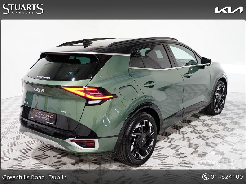 GT LINE PHEV: • *PANORAMIC SUNROOF* • ELECTRIC MEMORY SEATS • VENTILATED SEATS • EXPERIENCE GREEN METALLIC WITH FULL BLACK LEATHER • KEYLESS ENTRY • POWERED BOOT • LED HEADLIGHTS • ADAPTIVE CRUISE CONTROL • HEATED STEERING WHEEL • HEATED FRONT & REAR SEATS • ELECTRIC SEATS • LANE FOLLOW ASSIST • ANDROID AUTO & APPLE CAR PLAY • NAVIGATION BASED SMART CRUISE CONTROL WITH STOP & GO • HIGHWAY DRIVING ASSIST • TELEMATICS SYSTEM WITH KIA CONNECT • BALANCE OF KIA EXCLUSIVE 7 YEAR WARRANTY • Stuarts Garages, Irelands newest Kia Franchise • This Sportage GT LINE S phev comes with a comprehensive warranty • Attractive finance options are available upon request. • Call today for further information or to arrange a test drive. • Stuart’s Garages, Trading since 1946.