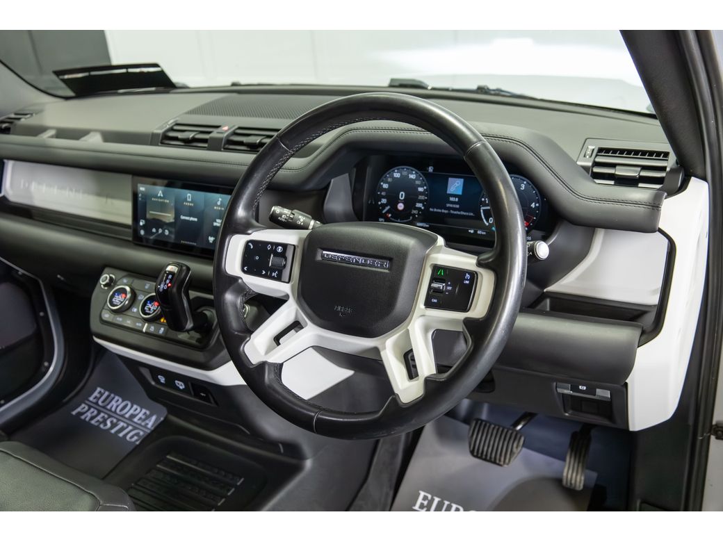 PRICE EXCLUDES VAT @ 23% 3 SEAT COMMERCIAL €333 TAX 2024 (242) Land Rover Defender 110 D250 S Finished in Hakuba Silver Metallic with Black Leather Interior - 22" Satin Black Alloy Wheels - Side Steps - Keyless Entry - Adaptive Air Suspension - Electric Folding Mirrors - Heated Front Seats with Lumbar Support - Leather Multifunctional Steering Wheel - Cruise Control - Lane Keeping Assist - Virtual Cockpit - Wide Touchscreen Infotainment System - Bluetooth & USB Connectivity - Apple CarPlay & Android Auto - 360 Cameras - Front & Rear Parking Sensors - Air Conditioning - Dual Zone Climate Control - Terrain Select - Hill Descent Control - Auto Stop/Start Function - Electronic Handbrake - Privacy Glass - Auto Lights - LED Headlights - LED Daytime Running Lights - LED Tail Lights - Auto Wipers - SOS Emergency Call System Manufacturers Warranty Until August 2027 Finance available Trade ins are considered Indoor viewing in Naas, Co. Kildare Contact our sales team on 087-3855810 for more information or to arrange a test drive.