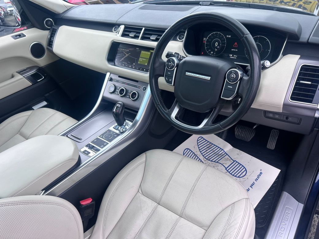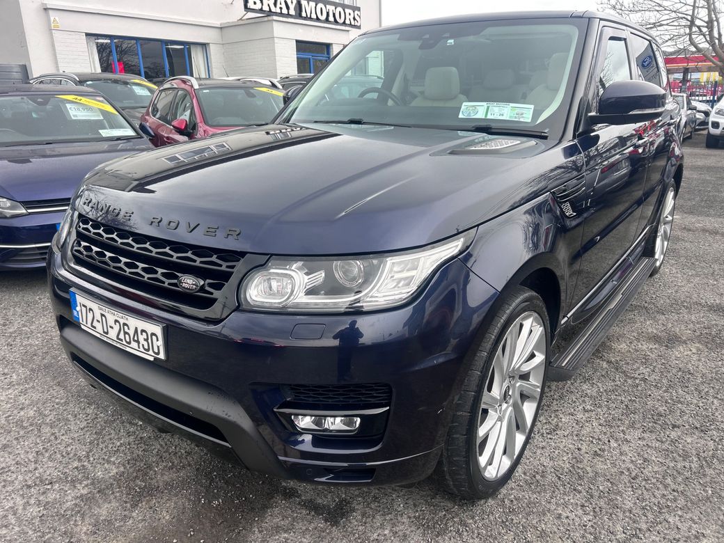 2017 Range Rover Sport High Spec HSE Model 2.0 Diesel Automatic Finished in Navy Blue Metallic Beige Leather Upgraded Multi Spoke Alloys Panoramic Sunroof Digital Dashboard sat nav LED Lights Side Steps Electric Memory Seats Dual Zone Climate Control with Aircon Cruise Control Multi Function Steering Wheel Electric Windows Electric Mirrors Electric Folding Mirrors Electric Bootlid NCT 2 Keys This Car is an AA Approved Car. All of our cars come supplied with: NCT Serviced Minimum 3 Months Warranty Motorcheck History Check 12 Months AA Membership 12 Months Roadside Assistance 12 Months Roadside Recovery 101 Point AA Inspection Checklist Carried Out Trade Ins Accepted Straight sale price is €26,950 Trade in price is €27,950 Viewing by appointment Call for more details We are an AA Approved Dealer and we are based in Bray on the Dublin and Wicklow border, just 20 minutes from the N7 / M50 interchange. We are easily accessible from the M11/M50, A98DT89.Call us for details on 0873996666 or check out www.braymotors.ie. Anti-Theft System, Central Locking, EBD, Fog Lamps, Parking Sensors, Remote Central Locking, Traction Control, Brake Assist System, Automatic Wipers, Daytime Running Lights, Hill-Start Assist