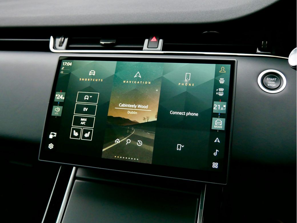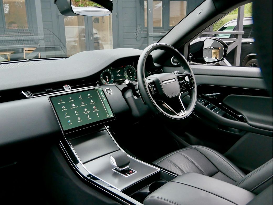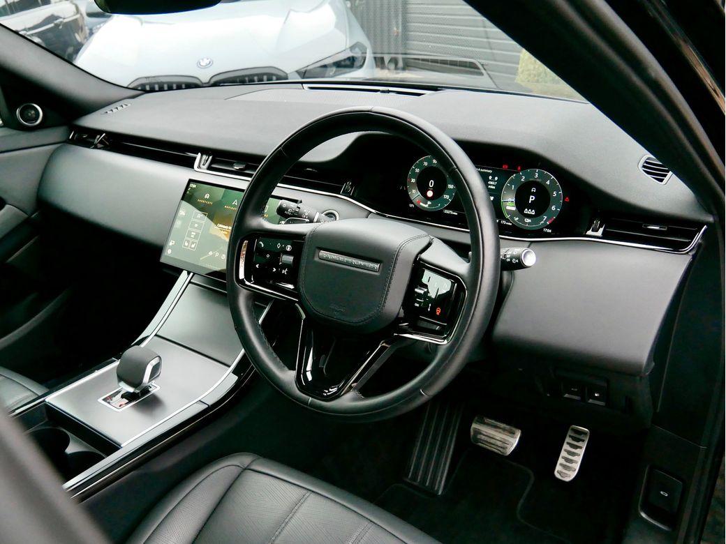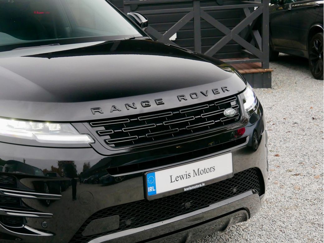 2024 Range Rover Evoque Dynamic HSE P300e is now in stock Presented in Santorini Black and paired to an Ebony Windsor perforated leather interior Powering this car is a turbocharged 1.5l petrol plug in hybrid drivetrain which produces a combined 309BHP Joining this is a wealth of features which include 20” Alloy wheels Panoramic tilt and slide sunroof Apple CarPlay Android Auto Meridian sound system 16 way Electrically adjustable front seats with memory function Heated front seats Wireless charger Blind spot assist Body coloured roof Rear view camera Black exterior mirror caps All wheel drive Driver Drowsiness Monitoring Paddle shifters Daytime running lights LED Premium headlights Ebony Headlining Heated steering wheel Veneer Dark Anodised Aluminium trim Keyless entry/ start Narvik Black Cladding Electric steering column Auto dip high beam assist 11.4” Infotainment screen Privacy glass Ebonys seatbelts Seat Lumbar 4 way Split fold rear seats ACC stop and go TPMS.