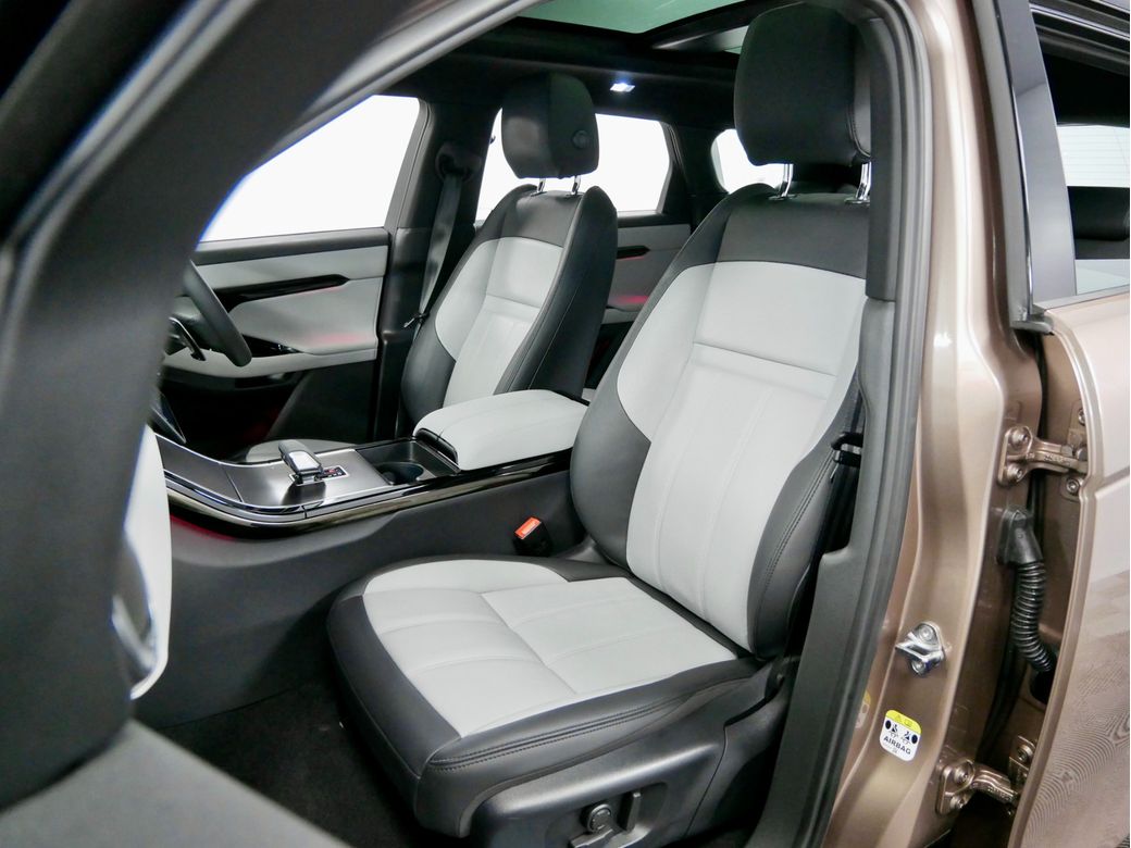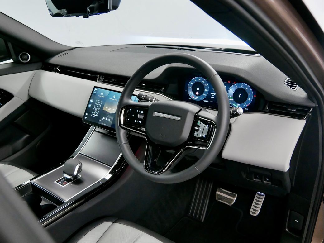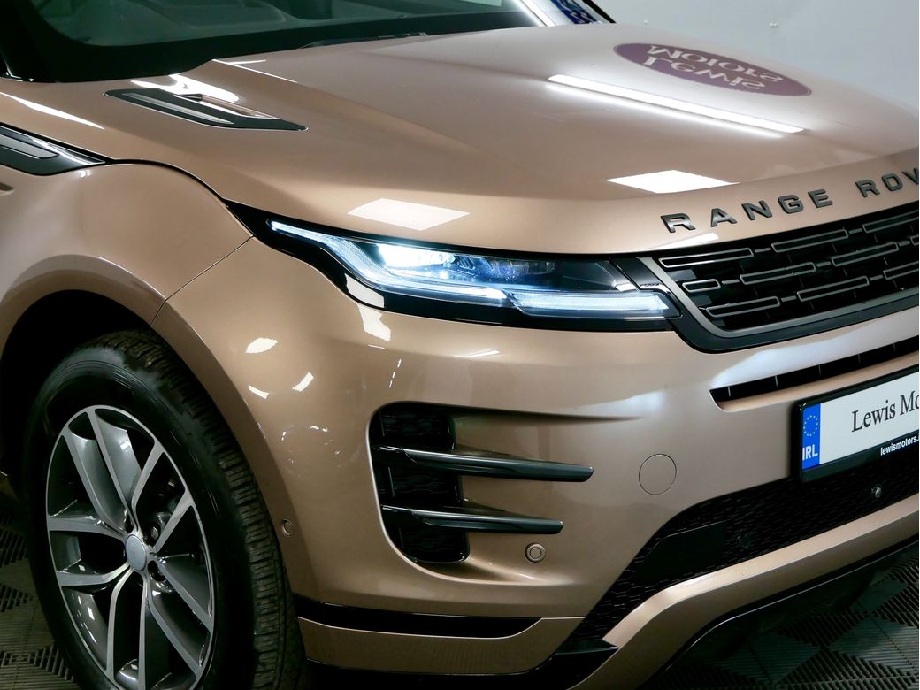 2025 Range Rover Evoque Dynamic SE P270e is now in stock Presented in Corinthian Bronze and paired to a Cloud and Ebony Taurus perforated leather interior Powering this car is a turbocharged 1.5l petrol plug in hybrid drivetrain which produces a combined 270BHP Joining this is a wealth of features which include 19” Alloy wheels Apple CarPlay Android Auto Meridian sound system Electric front seats with memory function for driver Heated front seats Wireless charger Driver assist 360 view camera All wheel drive Driver Drowsiness Monitoring Paddle shifters Daytime running lights LED Premium headlights Ebony Headlining Heated steering wheel Veneer Dark Anodised Aluminium trim Keyless entry/ start Auto lights 11.4” Infotainment screen Privacy glass Ebonys seatbelts Seat Lumbar 4 way Split fold rear seats ACC stop and go TPMS.