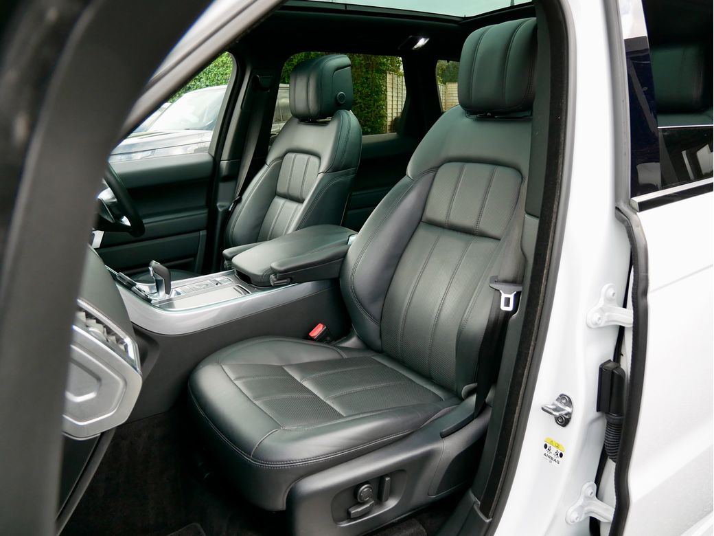 2020 Range Rover Sport HSE SDV6 is now in stock Presented in Fuji White over an Ebony leather interior Powering this car is a turbocharged 3.0l V6 diesel engine which is paired to an automatic gearbox Joining this is a wealth of features which include 22” Wheels LED headlights LED taillights Electric front seats with memory Heated seats front and rear Heated steering wheel Digital instrument cluster Meridian sound system Rear view camera Dual touch screen infotainment system Apple CarPlay Android Auto Terrain response Air suspension Refrigerated centre console Panoramic roof Keyless access.