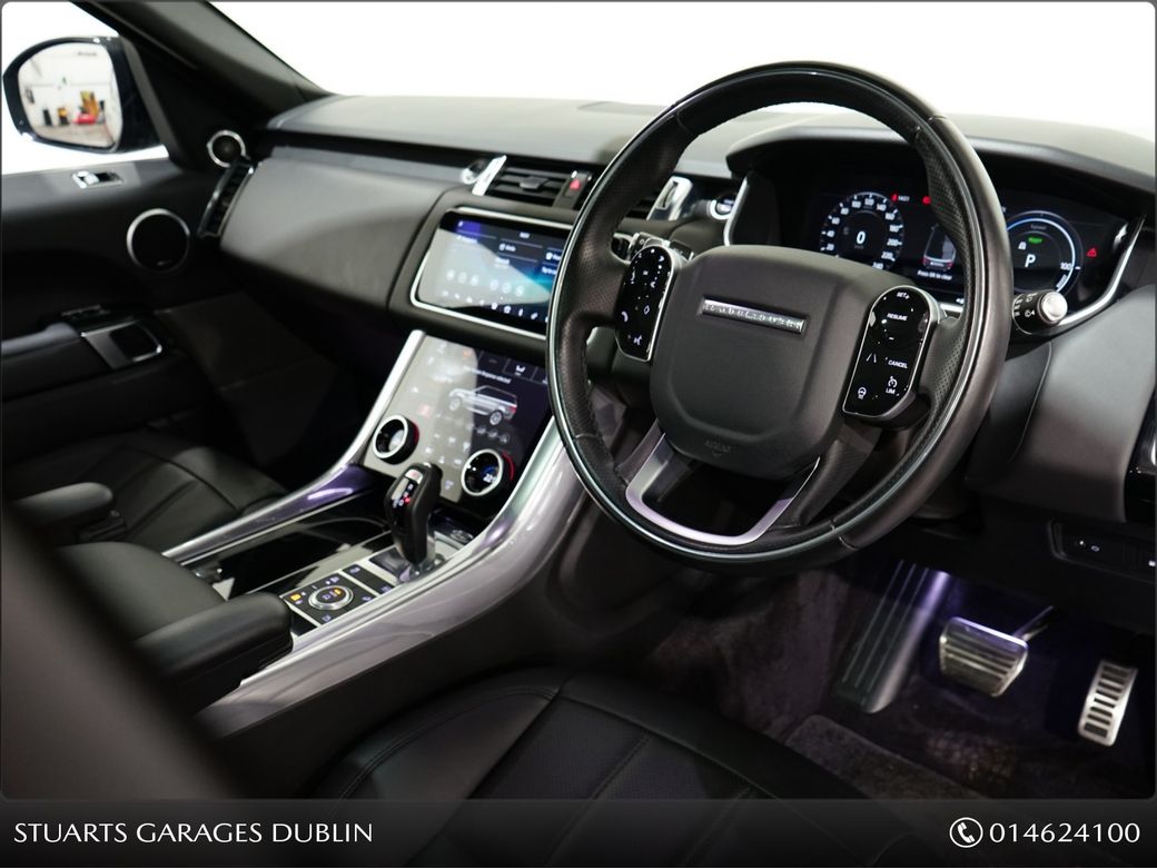 HSE DYNAMIC BLACK PACK PHEV***SANTORINI BLACK WITH BLACK LEATHER, PANORAMIC ROOF, 21” BLACK ALLOYS, KEYLESS ENTRY, REVERSING CAMERA, SAT NAV, MEMORY HEATED SEATS, AIR SUSPENSION, REAR HEATED SEATS, POWERED TAILGATE, MERIDIAN SOUND SYSTEM, HEATED STEERING WHEEL, ANDROID AUTO / APPLE CARPLAY, TOUCH PRO DUO, DUAL CLIMATE CONTROL, CRUISE CONTROL WITH SPEED LIMITER Buy in confidence from Irelands leading Land Rover specialist. This particular Range Rover Sport PHEV has been fully prepared by ourselves and comes with a comprehensive warranty and 12 months AA roadside Assist.