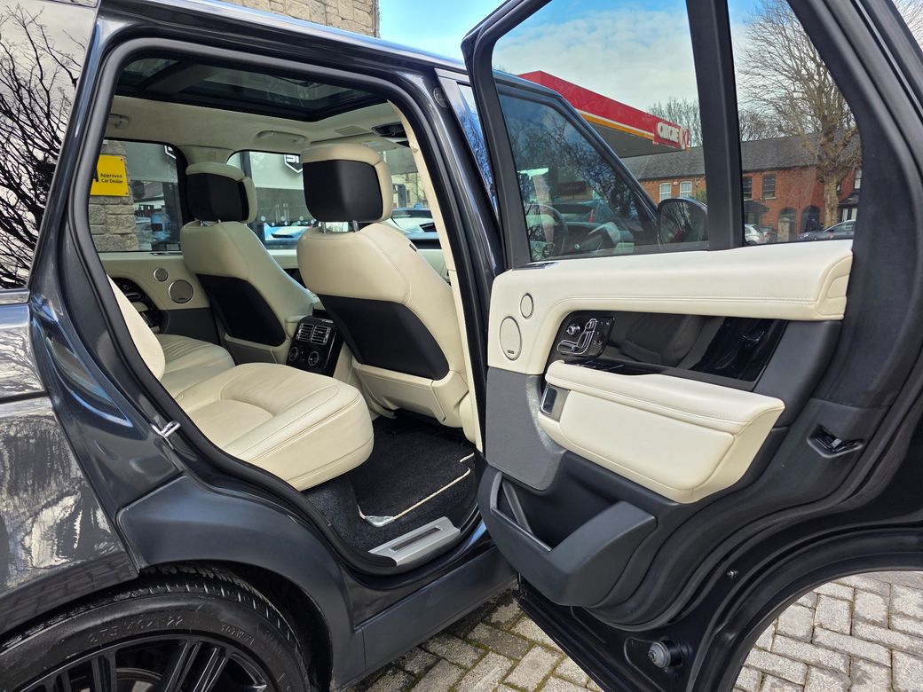 STUNNING 2020 ONE OWNER LANDROVER RANGEROVER P400E AUTOBIOGRAPHY. FULL LR SERVICE HISTORY. VIN: SALGA2AY0LA595211. SPEC: -FULL OYSTER HEATED AND AIR COOLED SEATS. -SLIDING PANORAMIC GLASS ROOF. -MERDIAN SPEAKERS. -PIANO BLACK INTERIOR. -BI COLOUR STEERING WHEEL BLACK WHEEL CREAM INSERT. -22" BLACK ALLOYS WHEELS. -REAR CLIAMTE CONTROL. -REAR HEATED SETAS. -TOUCH SCREEN MEDIA PACK HDD. -SAT NAV. -REV CAMERA. VIEWING BY APPOINTMENT ONLY 7 DAYS A WEEK Flexible times available to suit you. NATIONWIDE DELIVERY AVAILABLE Fast, reliable transport anywhere in Ireland. SIMI DEALER 2026 Fully accredited by the Society of the Irish Motor Industry. ONLINE FINANCE AVAILABLE Apply easily through our new userfriendly website. OPEN SINCE 2002 Over 20 years of trusted experience in the motor trade. FAMILY OWNED A business built on trust, integrity, and personal service. APPROVED SIMI DEALER Committed to the highest industry standards. CREDIT INTERMEDIARIES Working with numerous finance houses to offer tailored finance options. 12 MONTHS WARRANTY ENGINE AND GEAR BOX ONLY OR 12000 KMS WHICHEVER COMES FIRST.