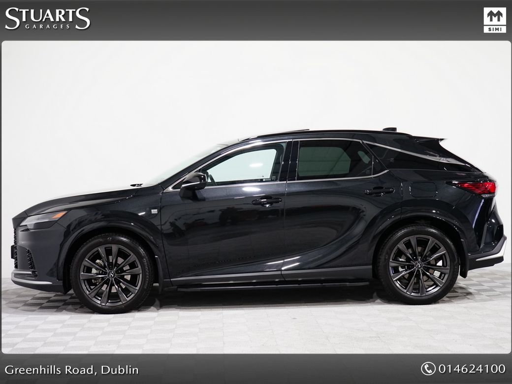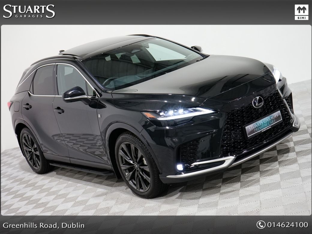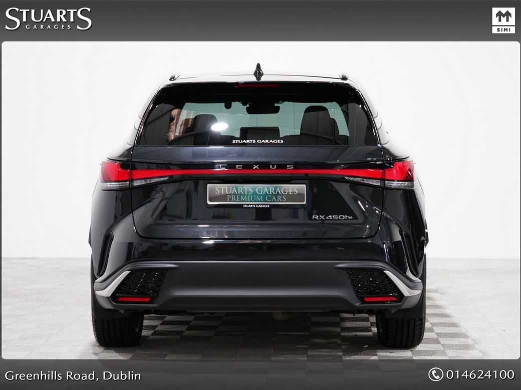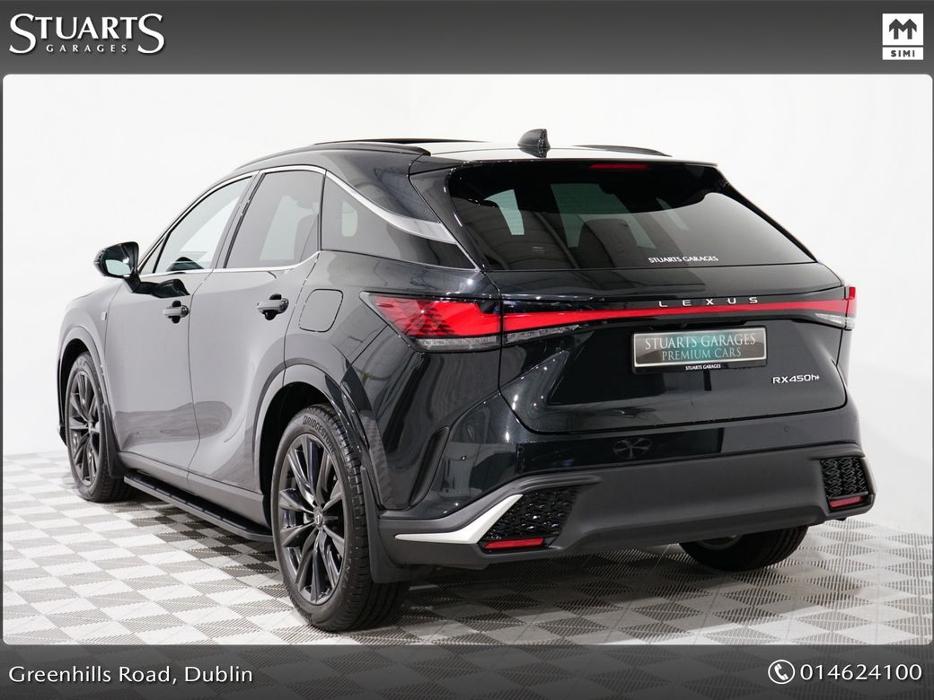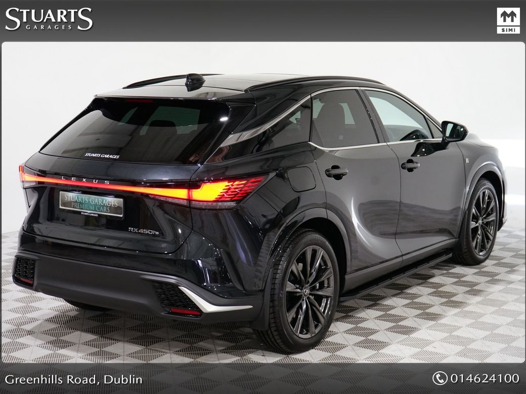 RX450+ PHEV F-SPORT: GRAPHITE BLACK METALLIC, BLACK LEATHER WITH BLACK HOLOGRAM INLAYS, 21” BLACK GLOSS 10 SPOKE ALLOYS, RUNNING BOARDS, PANORAMIC SUNROOF, TRIPPLE LED HEADLIGHTS, EXTERIOR BLACK PACK, HEADS UP, WIRELESS PHONE CHARGER, HEATED STEERING WHEEL, VENTILATED SEATS, ELECTRIC MEMORY SEATS, POWER BOOT, KEYLESS ENTRY, 3 ZONE CLIMATE, WIRELESS APPLE CARPLAY AND ANDROID AUTO, LANE ASSIST, BLONDSPOT MONITORING ETC At Stuarts Garages, we specialise in High Quality Premium Pre-Owned Cars. This particular LEXUS RX450+ comes with the balance of its manufacturer’s 3 year warranty and 12 months AA Roadside Assist. Attractive finance options, including PCP are available upon request. Call today for further information or to arrange a test drive. Trading since 1946.