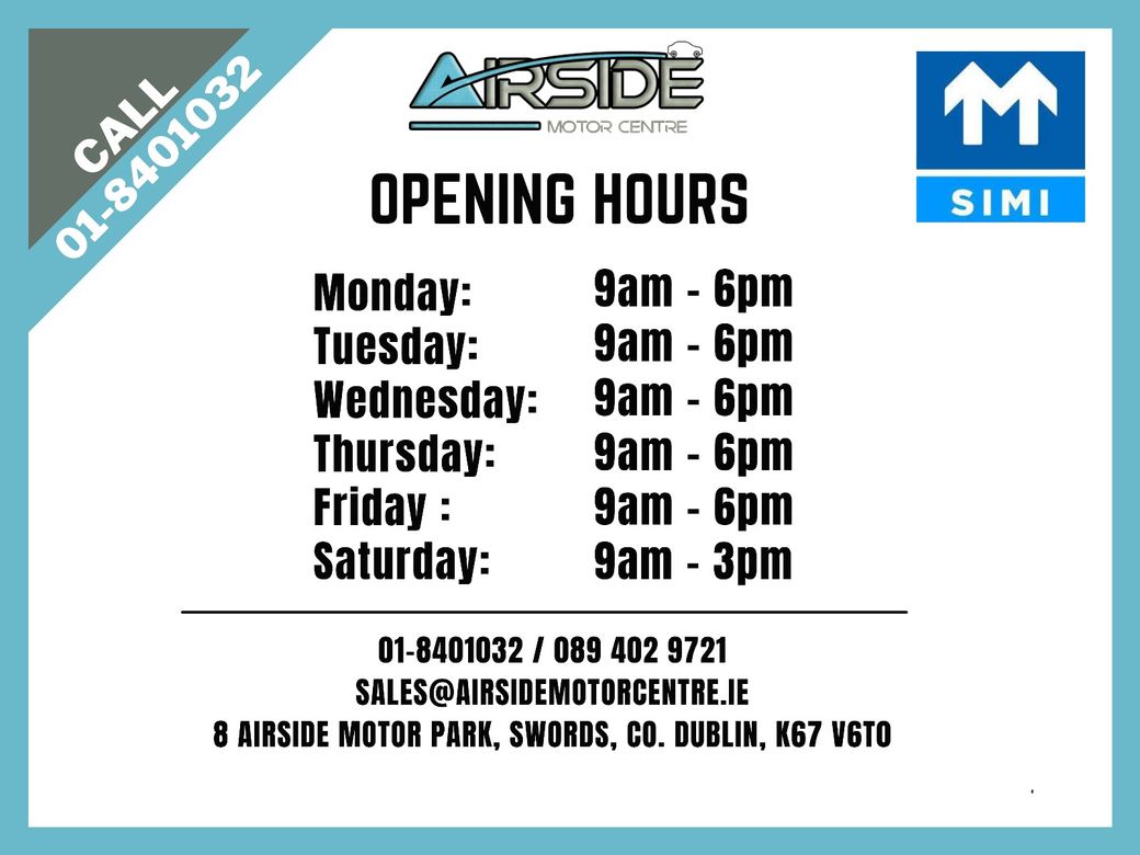 - CRUISE CONTROL - HEATED & AIR CON FRONT SEATS - REAR CAMERA & 360 PARKING CAMERA - ELECTRIC POWER BOOT - HEATED STEERING WHEEL - BLUETOOTH - WIRELESS PHONE CHARGER - PUSH BUTTON START - KEYLESS ENTRY - RARE COLOUR - VERSION L - SUNROOF - 4WD - JAPANESE VEHICLE REPORT AVAILABLE - RECALL HISTORY AVAILABLE - ACCIDENT FREE REPORT AVAILABLE - TWO KEYS PROVIDED WITH ALL SOLD CARS - AUTOMATIC - NCT COMPLETED BEFORE COLLECTION - NEW SERVICE - HISTORY CHECKED - HASSLE FREE IN HOUSE WARRANTY PROVIDED, NO THIRD PARTY INVOLVED - AN INDEPENDENT FAMILY RUN BUSINESS 1978. - JAPANESE VEHICLE IMPORTER & CAR SPECIALIST SINCE 1987. - SIMI APPROVED (Society of the Irish Motor Industry) - FINANCE AVAILABLE FROM 10% DEPOSIT* - COMPETITIVE APRs OFFERED, ALWAYS CHECK YOUR APR WHEN COMPARING OUR FINANCE PACKAGES TO OTHER DEALER'S FINANCE PACKAGES - Opening Hours - Mon - Fri 9am - 6pm - Saturday 9am - 3pm - Apply for finance on our website www.airsidemotorcentre.ie. For further information or to book an appointment, please call 01-8401032 / 089 402 9721. Fog Lamps, Traction Control, 2 Keys Available, Automatic Lights, Engine Immobiliser, Isofix Points