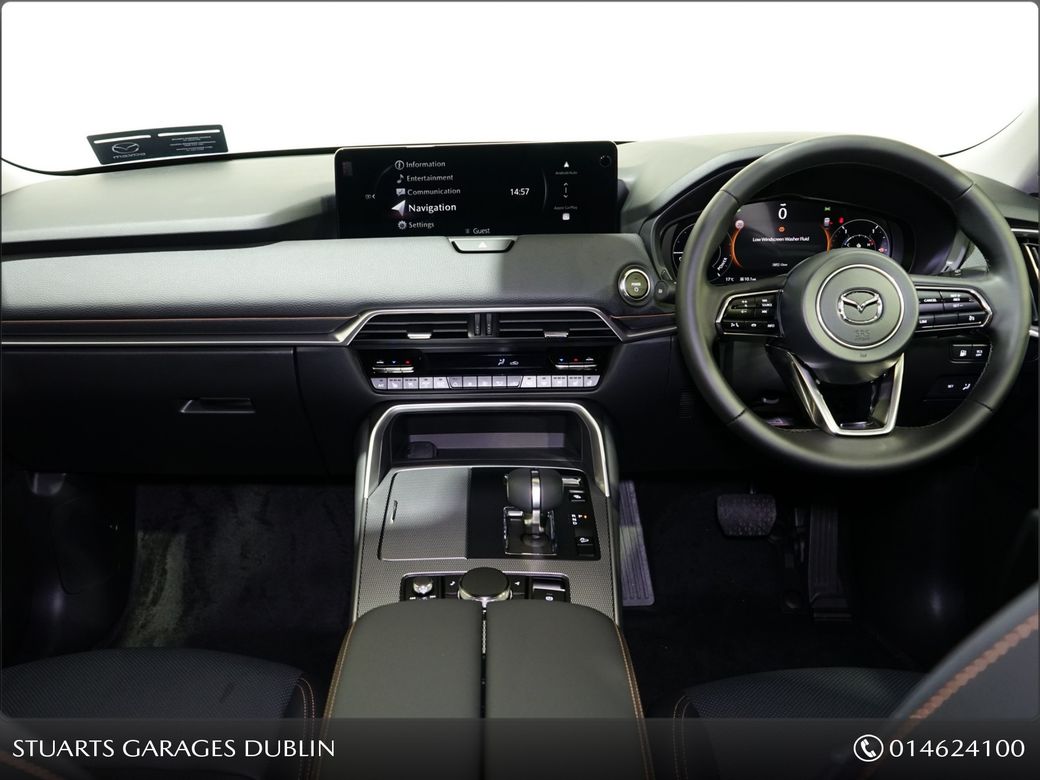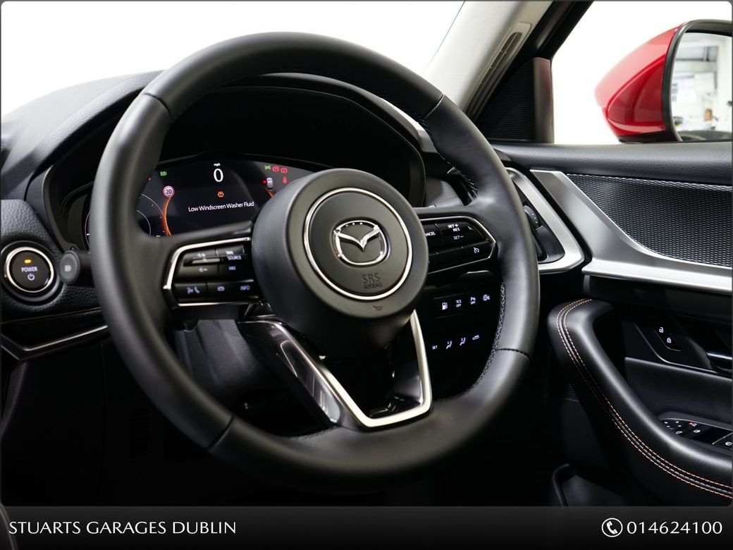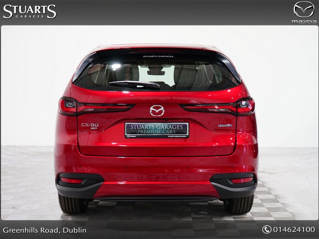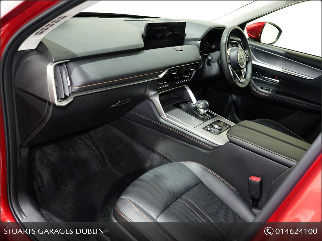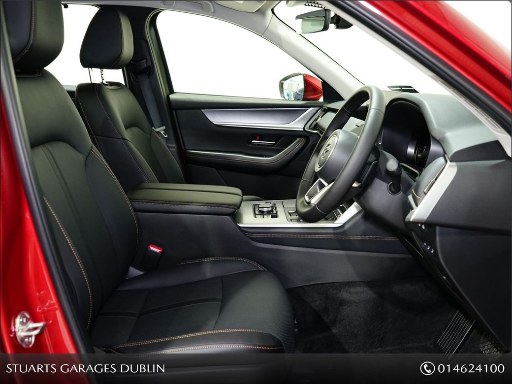 IN STOCK FOR 261 JANUARY DELIVERY@STUARTS MAZDA, YOUR HOME FOR MAZDA IN SOUTH DUBLIN*MAZDA CX-80 2.5 PHEV 327PS EXCLUSIVE LINE*BLACK LEATHER SEAT W/ SEAT VENTILATION W/ SEAT HEATER, 20 INCH ALLOYS,, -Rear Camera -Front centre storage illumination -Air Conditioning - D ual zone climate control • with rear air vents • Front centre storag e illumination • Rear center armrest with 2 cupholders • Rear coat hook x2 • Rear door integrated sunshade • Mazda Mi-Drive System - Normal mode, Sport mode, Off-road mode & Towing mode Charging - Type 2 Mode 2 cable for AC charging • via UK 3-pin plug • Door mirror memory with selectable tilt-down function when in reverse • Security - Smart Keyless Entry • Antirust wax • Auto Dimming Outer Mirror • Power-folding door mirrors • Emergency Stop Signalling (ESS) • Hill Launch Assist (HLA) • Parking aid - Front and rear parking sensors • Power liftgate - Hands-free • Rear wiper, adjustable speed with intermittent wipe • Front Wiper De-Icer • Adjustable front wipers with rain-sensors • Charging - Type 2 Mode 3 cable for AC charging via home or public charge points • i-stop • Electronic Parking Brake with auto-hold • Floating centre console • LED Interior lighting - front & rear • LED Interior lighting - front & rear • Illumination entry • Interior mirror - Frameless auto-dimming rear-view mirror • LED Interior lighting - boot • Tonneau cover • Sunglasses holder - roof mounted • Power door lock • Security - Smart keyless entry • 12v electrical power outlet • Electric Windows - front and rear • Electric Windows - Front & Rear with one-touch function • Front centre storage illumination • Start/Stop button • Steering wheel-mounted audio and Bluetooth® controls • Power Double-Lock • Steering wheel - Heated, leather-wrapped with electric telescopic and tilt adjustment • Trip Computer with speed alarm Adjustable • Speed Limiter • Front central airbag • Airbag - Front dual stage driver and single stage front passenger & side • Airbag - Front dual stage driver and single stage front passenger & side • Thatcham accredited alarm & immobiliser • ISOFIX child seat anchorage, attached to outer rear seats • Cruise Control - with Adjustable Speed Limiter • Airbag - Driver & front passenger side airbags with front & rear curtain airbags • Dynamic Stability Control (DSC) • e-Call with GPS • Front Cross Traffic Alert (FCTA) • Security - Smart keyless entry • Airbag - Drivers front knee • Airbag - Front passenger cut-off switch • Post Crash Fuel Cut Off System • ISOFIX child seat anchorage, attached to outer rear seats • Tyre Pressure Monitoring System (TPMS) • Emergency tyre repair kit • Cruising & Traffic Support (CTS) • Traffic Sign Recognition (TSR) • Traffic Sign Recognition (TSR) • Amazon Alexa car integration • Integrated Bluetooth® • Mazda Connect • Mazda Navigation System • Wireless Apple Carplay® and Android AutoTM Bluetooth,Centre Armrest,Climate Control,Cruise Control,Electric Seats,Electric Windows,Electronic handbrake,Folding rear seats,Heated Seats,Sunroof,Air Conditioning,Anti-Theft System,Central Locking,Parking Sensors,Traction Control,Brake Assist System,Alloy Wheels,Privacy Glass,Rear Spoiler,Heated Front Seats,Multi-Function Steering Wheel,Sat Nav,Selectable Drive Mode,Stop/Start Button,Automatic Wipers,Daytime Running Lights,Hill-Start Assist,Reversing Camera.