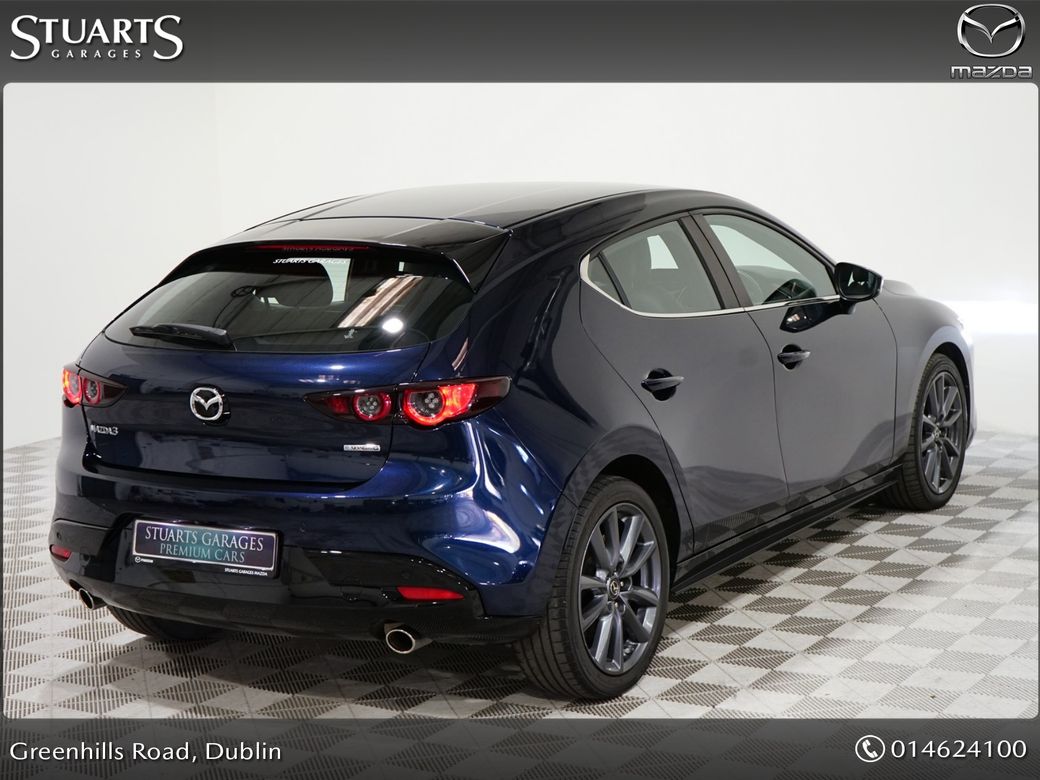 MAZDA 3 2.0P 5DR (122ps) GT**ELECTRIC LEATHER HEATED MEMORY SEATS, ADAP CRUISE, BLIND SPOT, KEYLESS ENTRY & GO, DUAL CLIMATE, REAR CAMERA, PDC, HEADS UP, SAT NAV, TRAFFIC SIGN REC, PWR FOLD MIRRORS, PRIVACY GLASS, FRAMELESS MIRROR*** THIS CAR IS IN STOCK NOW AND READY TO SECURE BY DEPOSIT . LOW RATE HP CAN BE ARRANGED. TRADE INS ARE WELCOME. CONTACT OUR ONLINE SALES TEAM TODAY, WE WILL DO THE REST. Buy in confidence from Irelands leading KIA & Mazda Franchise Dealer Stuarts Garages EST.1946.