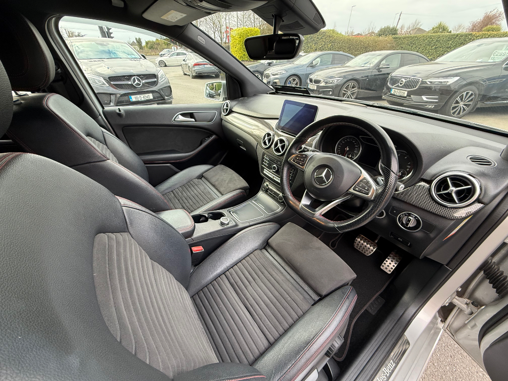 **ONLY TEN MINUTES FROM BLANCHARDSTOWN SHOPPING CENTRE** 2017 Mercedes B180 CDI AMG Auto in immaculate condition throughout with an excellent service record, low kms and huge spec to include: upgraded alloy wheels, xenon headlights, front foglights, electric windows & mirrors, electric & heated front seats, sport seats, ambient lighting, bluetooth telephone system, folding mirrors, cruise control, media control unit, front centre armrest, climate control with A/C, leather multifunction sport steering wheel, abs, isofix, esp, multiple airbags etc. For further information, please contact Adam on 01 8017777 / 083 3983490.