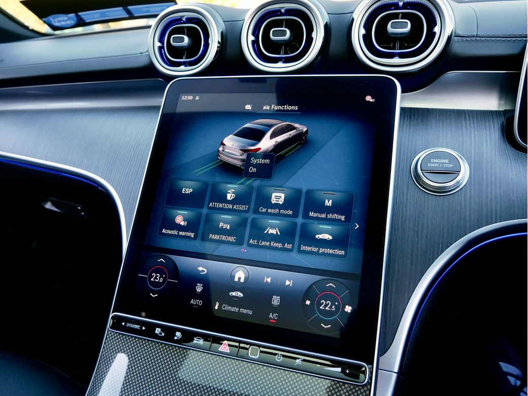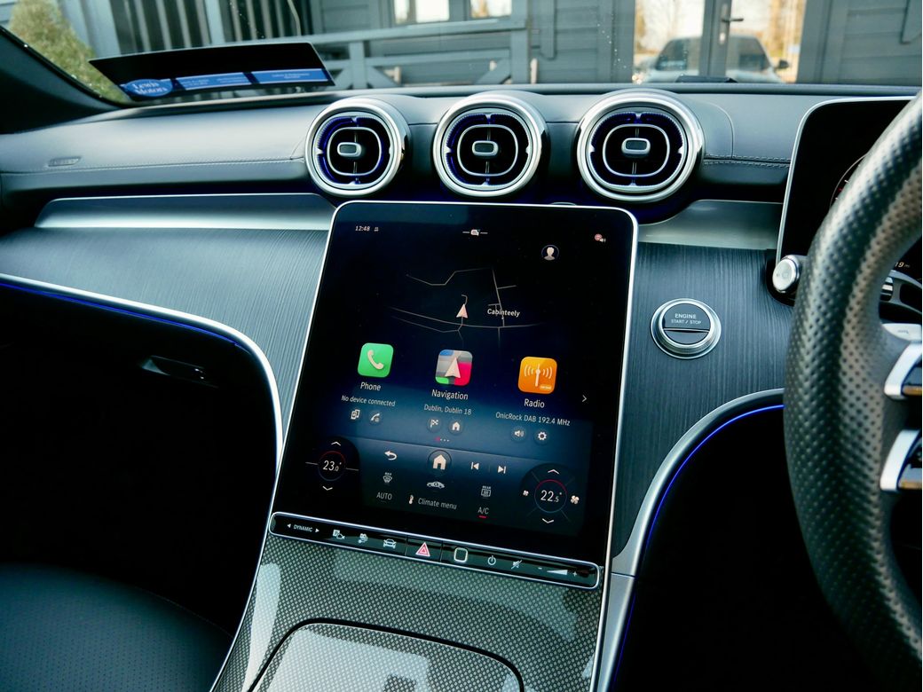 2025 Mercedes Benz C300e AMG Premium now in stock This example is presented in Obsidian Black over a Black leather interior Powering this car is a turbocharged 2.0l petrol engine which is paired to an electric motor and produces a combined 313BHP Joining this is a host of features which include Tilt and slide panoramic sunroof Electric front seats with memory function 18” Alloys AMG Double spoke alloys AMG Bodykit AMG interior 360 camera Keyless entry Privacy glass Mercedes Benz connect Apple CarPlay Android Auto Blind spot monitoring Active parking assist Active lane keeping assist Collision warning LED headlights LED taillights Fingerprint scanner 9 speed automatic gearbox Digital instrument cluster TPMS Comfort suspension Electric folding mirrors Road sign recognition Black fabric headliner MBUX multimedia system Dual zone climate control Automatic high beam control Acoustic glazing Heated front seats Interior lighting package Wireless telephone charging Drive mode select Fineline anthracite wood trim Light package Mirror package MBUX Navigation premium.