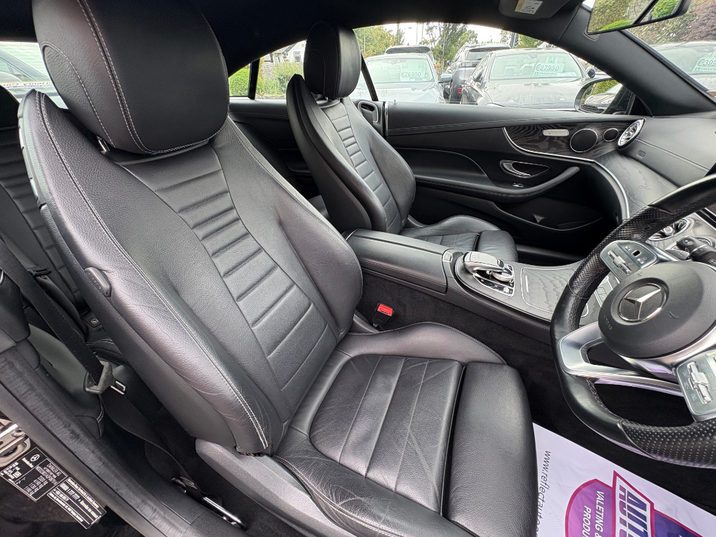 Call Barry-John on 0863594983 or 01 8017777 to find out more about this stunning Mercedes Benz E220D AMG Coupe with great spec including Night Pack, We can offer a click and deliver or click and collect service if a customer wishes, This car comes fully serviced, warrantied, trade ins accepted and finance can be arranged. We are a SIMI approved dealership who specializes in premium cars and we are located just 10 minutes from Blanchardstown Shopping Centre just off the M3. Our Eircode is A85 DK15. We are located on Dunshaughlin Main street on the Navan side of the village. Anti-Theft System, Central Locking, EBD, Keyless Entry, Multiple Air Bags, Parking Sensors, Remote Central Locking, Traction Control, Brake Assist System, 2 Keys Available, Automatic Wipers, Daytime Running Lights, Engine Immobiliser, Hill-Start Assist, Isofix Points