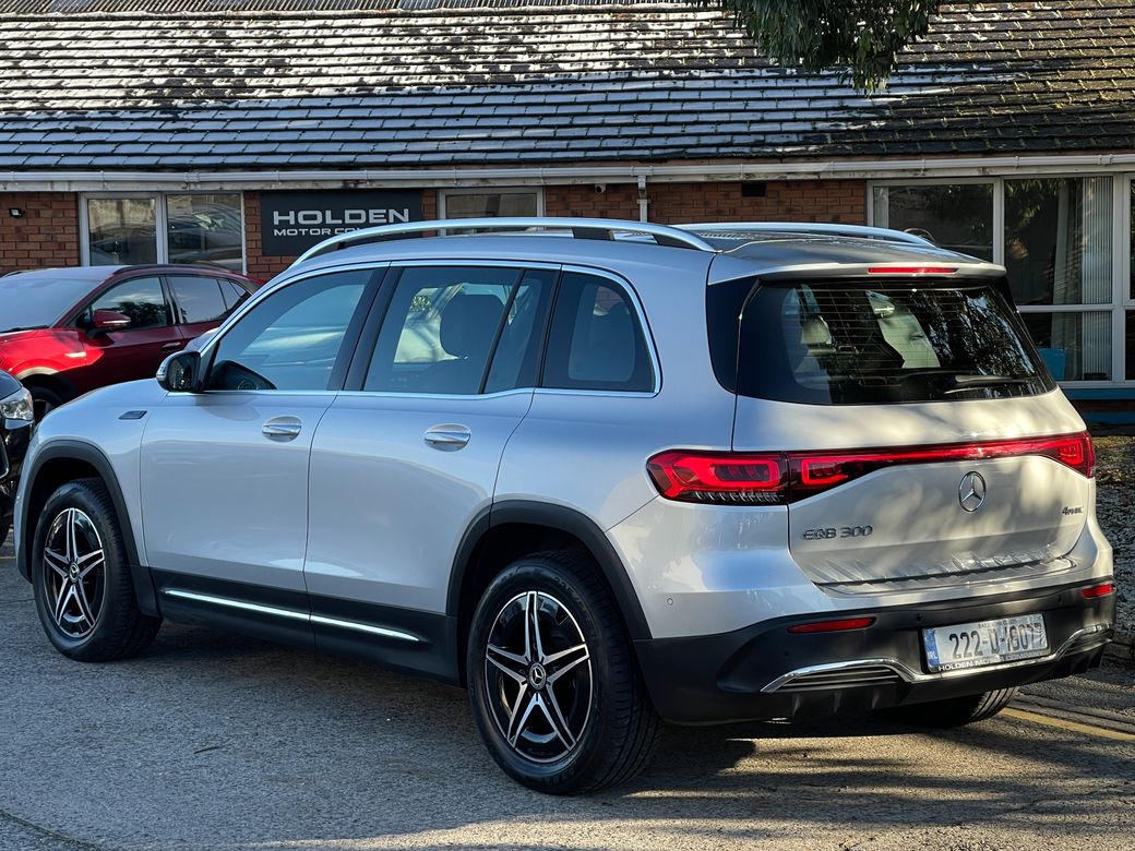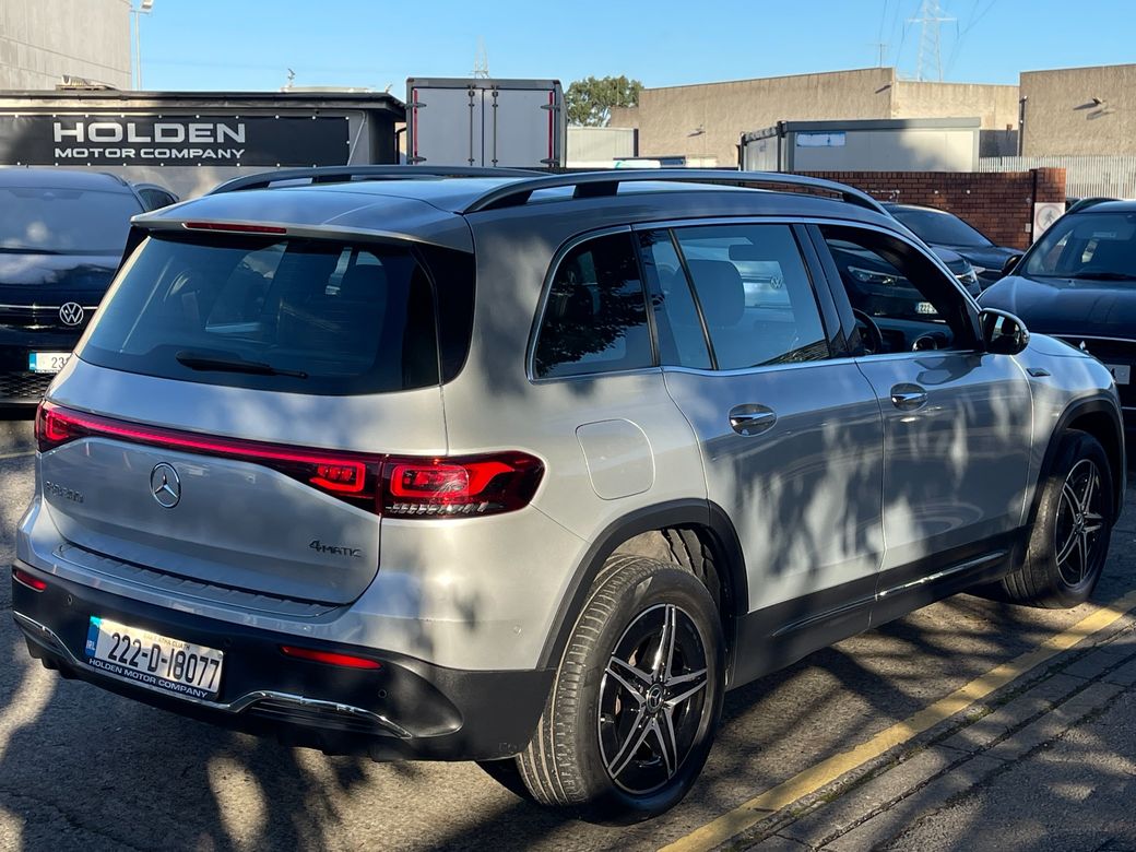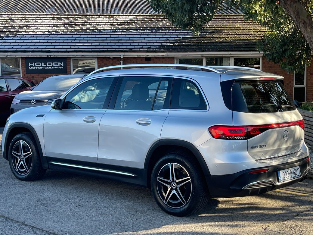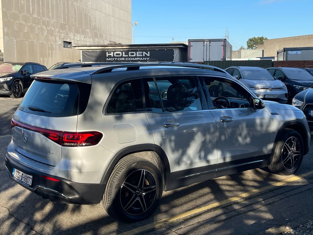 97.6% Battery Health · Premium Interior · High Specification This stunning 2022 EQB 300 AMG Line offers luxury, space, and fully electric efficiency with 4MATIC all-wheel drive and a 7-seater configuration — perfect for families who want style and technology without compromise. Interior & Comfort * Black leather & Alcantara AMG Line interior * Ambient interior lighting * Heated front seats * Climate control air conditioning * Digital dashboard * Multifunctional steering wheel * Keyless entry & push start * Electric boot * Folding mirrors Driving & Performance * 4MATIC all-wheel drive * 97.6% battery health * Gear shift paddles * Different driving modes Safety & Assistance * Rear camera with Park Assist * Lane assist * Active brake assist * Blind spot assist * Surround exterior lighting Technology & Connectivity * Touch screen multimedia system * Satnav * Bluetooth * WiFi * Apple CarPlay & Android Auto Other * 7 seats * 2 keys A premium electric SUV offering space, safety, and top-tier Mercedes technology — the 2022 EQB 300 AMG Line delivers exceptional performance and comfort. Here at Holden Motor Company we are a family run business with a friendly and knowledgeable sales team. We aim to stock a wide range of over 100 carefully selected premium used cars all sourced directly from main dealerships here in Ireland and the UK. We aim to supply all our cars at the most competitive prices in the country. Extended warranty available on certain makes and models. Delivery can be arranged throughout the country. Each of our retail cars comes with a detailed history report and fully serviced or health checked by a network of independent mechanics, a valid NCT and valeted prior to collection. Tailored finance packages available. We are open 6 days a week. For more information on our cars please contact our sales team on 01-4604434/0870923236 or email sales@holdenmotorcompany.ie Due to a high turnover in stock we recommend that you contact our sales team to make sure the car is still available and to make an appointment.