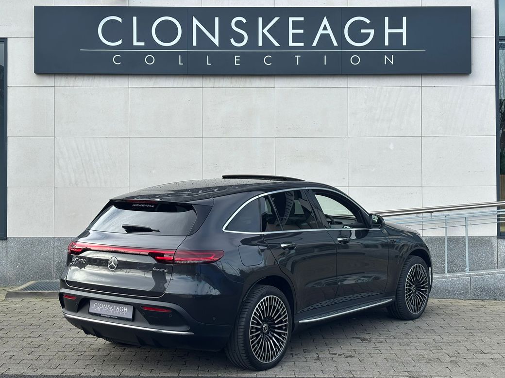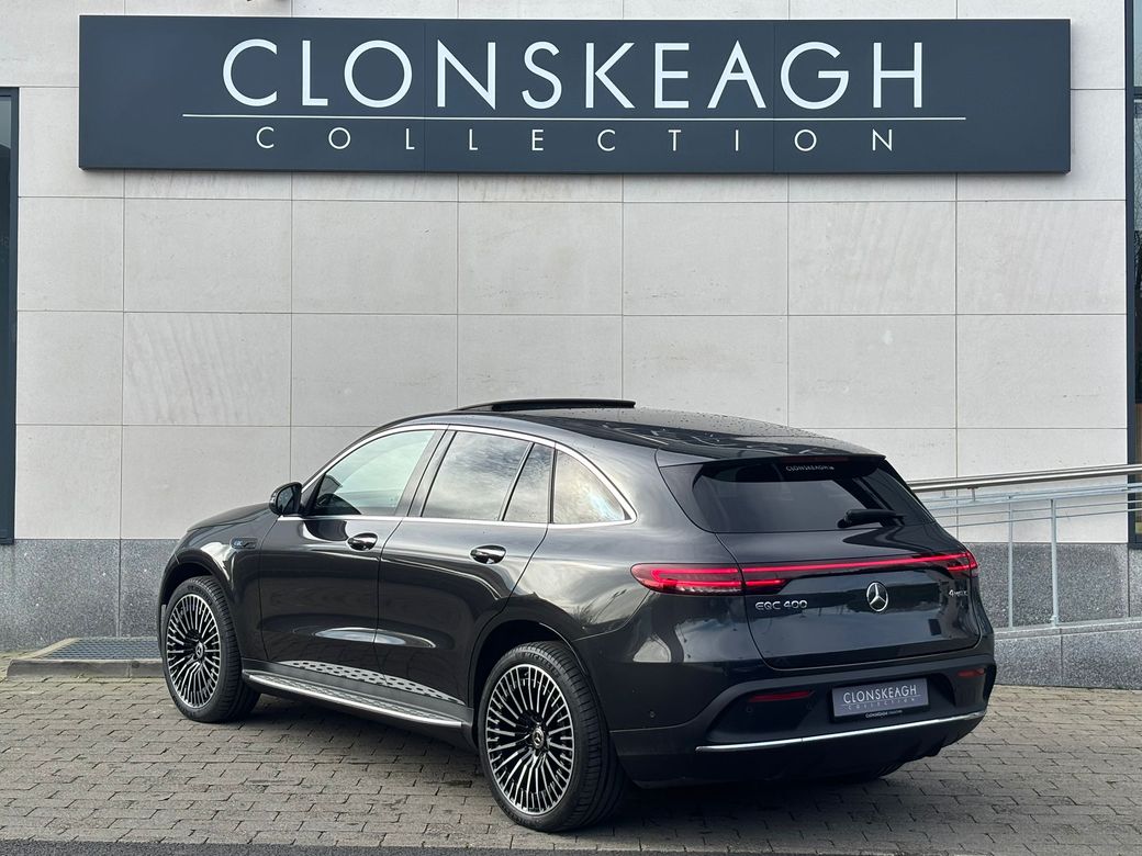 Clonskeagh Collection showcases this beautiful Mercedes-Benz EQC 400 4MATIC AMG Line Premium with super low mileage, finished in elegant Graphite Grey Metallic and complemented by refined black anthracite leather interior. Hosts of extras to include, - Active Parking Assist - Blind Spot Monitoring - Active Lane Keeping Assist (Camera) - Smartphone Integration Package - Collision Warning System With FCW-Stop Active Brake Application - Hard Drive Navigation - Multi-Year Free Map Updates - Steering Wheel Gearshift Buttons/Steering Wheel Shift Paddles - Electroplated - Android Auto - Apple Car Play - Road Sign Recognition System And Much More, Financing is available at highly competitive rates, thanks to our strong partnerships with a range of financial institutions. This allows us to provide access to some of the most appealing finance packages, including Hire Purchase, PCP agreements and balloon payments. We can tailor the products to suit your needs. We welcome trade-ins of all types and are committed to providing highly competitive valuations for them. Every vehicle includes a comprehensive warranty, with options for extension available. In addition, each purchase comes with AA roadside assistance for added peace of mind. Visit our showrooms on the Clonskeagh Road where we showcase over 80 vehicles. Our basement showroom accommodates 50 cars and allows you to explore options regardless of weather conditions. We are open from 9am-6pm Monday to Friday and Saturday 10am-4pm. SIMI member 2026 Follow us on instagram @clonskeaghcollection.