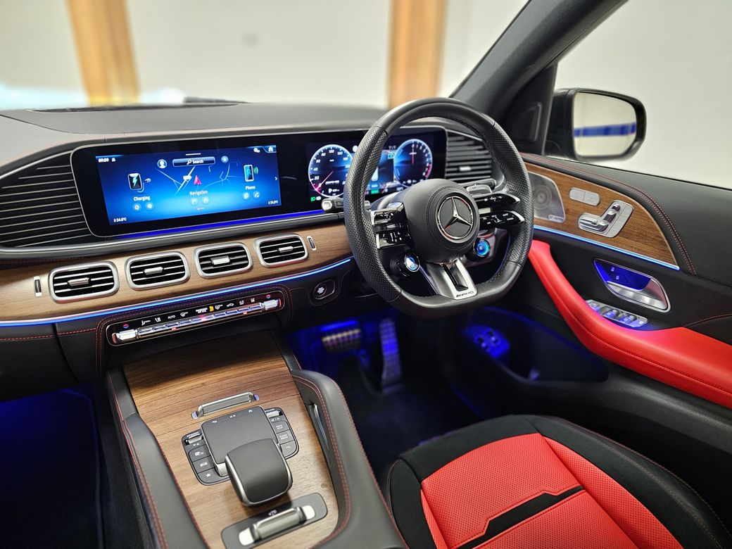 MASSIVE SPEC !!!! THIS IS A 251 REGISTERED MERCEDES GLE 53 AMG PREMIUM IN OBSIDIAN BLACK METALLIC WITH 2 TONE BLACK AND RED LEATHER INTERIOR AND A DARK WOOD FINISH -- SLIDING SUNROOF -- LANE ASSIST AND BLIND SPOT MONITORING -- ELECTRIC MEMORY HEATED SEATS -- BURMEISTER SURROUND SOUND SYSTEM -- KEYLESS ENTRY AND GO -- 360 DEGREE SURROUND CAMERA AND PARKING SENSORS FRONT AND REAR -- ADAPTIVE AIR SUSPENSION -- POWER OPENING AND CLOSING BOOT -- XENON AND LED LIGHTS -- AMBIENT LIGHTING -- 22"ALLOYS -- ELECTRIC FOLDING MIRRORS -- SATELLITE NAVIGATION -- APPLE AND ANDROID CAR PLAY -- SPORTS EXHAUSTS SYSTEM -- RUNNING BOARDS -- FULL SERVICE HISTORY -- BLACK EXTERIOR PACKAGE -- LOW ANNUAL ROAD TAX.