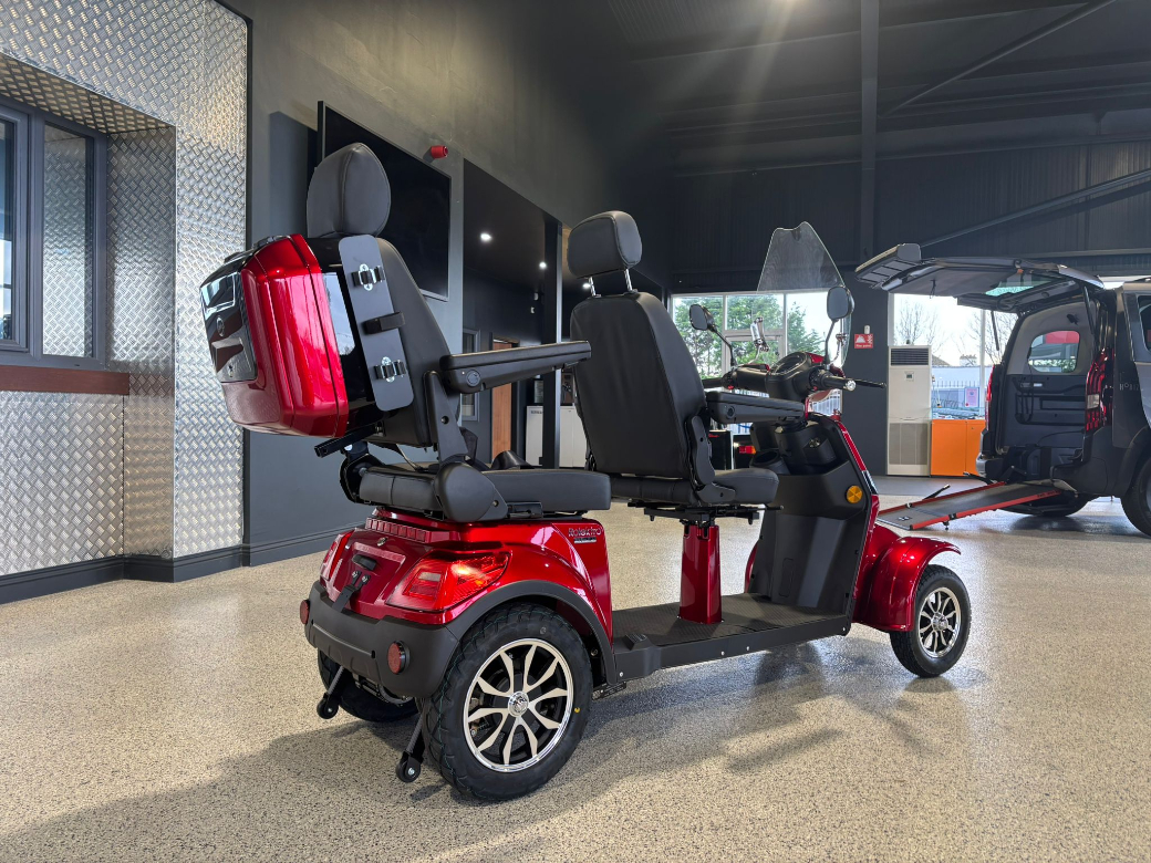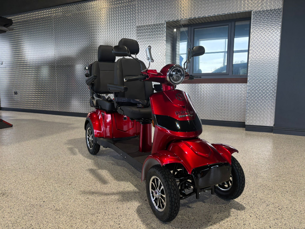 Two seater scooter available in stock today. Now available from Donal Murtagh Mobility Ltd New Rolektro Four-wheel e-scooter, E-Quad 15 V.3 Premium, 1000 W with long life Lithium Battery. This is a robust high quality outdoor scooter designed for maximum comfort, safety and range. As listed below this Premium model comes with the extras as standard! Nationwide delivery available ask for rates. Extras included: *Rear top case *Walking stick holder *Under seat storage *Windshield *Square adaptor for a trailer hitch. Specification: *Max Speed: 15Km/h *Range: Up to 60Km *Battery type: Lithium *Charging time: 6 Hours *Suspension: Independent suspension front, two shock absorbers rear. *Braking system: Disc brakes front and drum brake rear. *Lighting: LED front light, rear light, brake light, indicators. *Weight incl. battery: 102Kg *2 Key sets *Alarm with 2 X Fobs *Warranty: 1 Year Donal Murtagh Mobility Ltd are specialist suppliers and converters of vehicles for the disabled, located at two great locations with state-of-the-art facilities with expert advisors and engineers to assist you with your mobility needs **Unit 1 Moate Business Park, Moate, Co Westmeath. Eircode: N37AH05** **New Premises Now Open, Athleague, Co Roscommon. Eircode: F42AE18** For any further advice or questions you might have please don't hesitate to contact us: Athleague Office 090 6663010 Moate Office 090 6481050 Web www.DMmobility.ie.