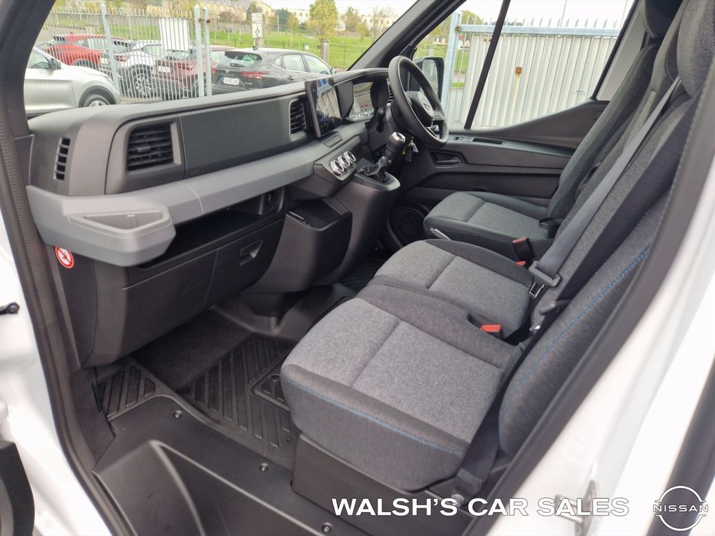 Price advertised is €35,162 plus VAT + VRT for Business Users VAT + €200 VRT inclusive price is €43,450 Metallic Paint €550 extra, van shown is not metallic New 2026 Model Nissan Interstar SV Premium + Heated Windscreen Scrappage deals also available. Automatic Lights, Automatic Wipers, Blind Spot Detection, Lane Departure Warning, Reversing Camera, Traffic Sign Recognition, LED Headlights, Rear Parking Sensors