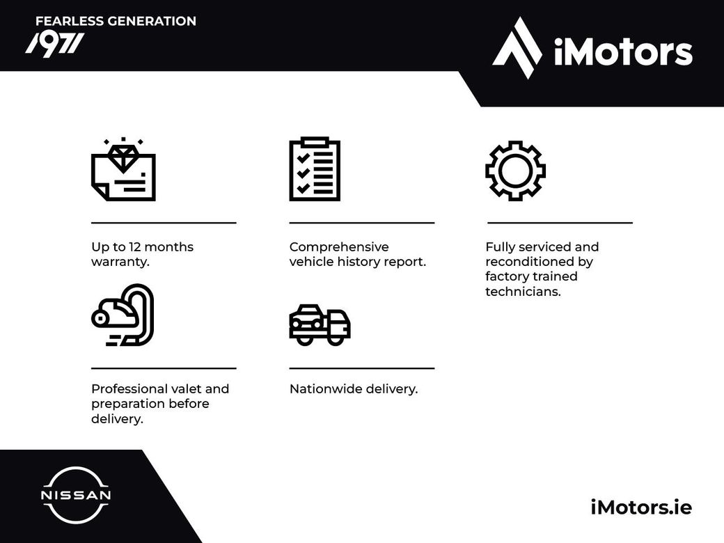 € straight sale price € retail price STOCK NUMBER # Established over five decades ago, iMotors stands as a cherished family enterprise deeply rooted in the motor industry. Our enduring legacy speaks volumes about our commitment to excellence. With nationwide delivery services, we ensure that our offerings are accessible to customers across the country. As proud main dealers for Kia, Nissan, and Isuzu, we showcase an extensive array of both new and pre-owned vehicles, catering to everyone. Dedicated to exceeding expectations, we meticulously inspect all pre-owned vehicles with the expertise of our manufacturer-trained technicians. Furthermore, we provide up to 12 months of nationwide warranty coverage for added peace of mind. Our dedication to customer satisfaction extends beyond the sale. Our after-sales service is renowned for its attentiveness and efficiency. Experience our exceptional service firsthand by visiting our showrooms in Letterkenny or Malin today. For inquiries or to schedule a visit, please contact us at: Letterkenny - 0749134567 Malin - 0749370605 Important: We try to list all specifications and extras, but please be aware that vehicles may be listed to have extras that may not be present. Please check with us before making a purchase decision.
