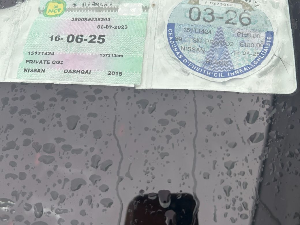 nissan qashqai 1.5 dsl sv mlack met in excellent condition original car local owner good service history long nct 02/2027 great spec which includes Nissan Qashqai 1.5 dCi 2015 – 6 Speed Manual Finished in Deep Black with Charcoal Interior, this Qashqai is presented in excellent condition and has been fully prepared for sale. Key Features & Specification • Bluetooth • USB Connectivity • Dual Digital Climate Control – Ice Cold Air Conditioning • Leather Hand-Stitched Multi-Function Steering Wheel • Steering Wheel Radio Controls • Electronic Parking Brake • Start/Stop System • 6-Speed Manual Gearbox • Alloy Wheels • Front & Rear Armrests with Cup Holders • Height Adjustable Seats • Height & Rake Adjustable Steering Wheel • 4 Electric Windows • Electric Mirrors • Electric Folding Mirrors • ISOFIX Child Anchorage Points Safety & Driving Aids • ABS Brakes • Traction Control • Onboard Stability Systems Vehicle Preparation • Fully Serviced • Timing Belt & Water Pump Done • Carefully inspected and road tested prior to sale Roadworthiness • NCT valid until 02/02/2027 • Road Tax valid until 31/03/2026 Ownership & Purchase • 6 Month Warranty • Trade-Ins Accepted • Finance Arranged t&c apply A very clean, well-maintained Qashqai that drives exactly as it should and represents excellent value in today’s market. call michael today on 050421400 michael@donalryan.ie.