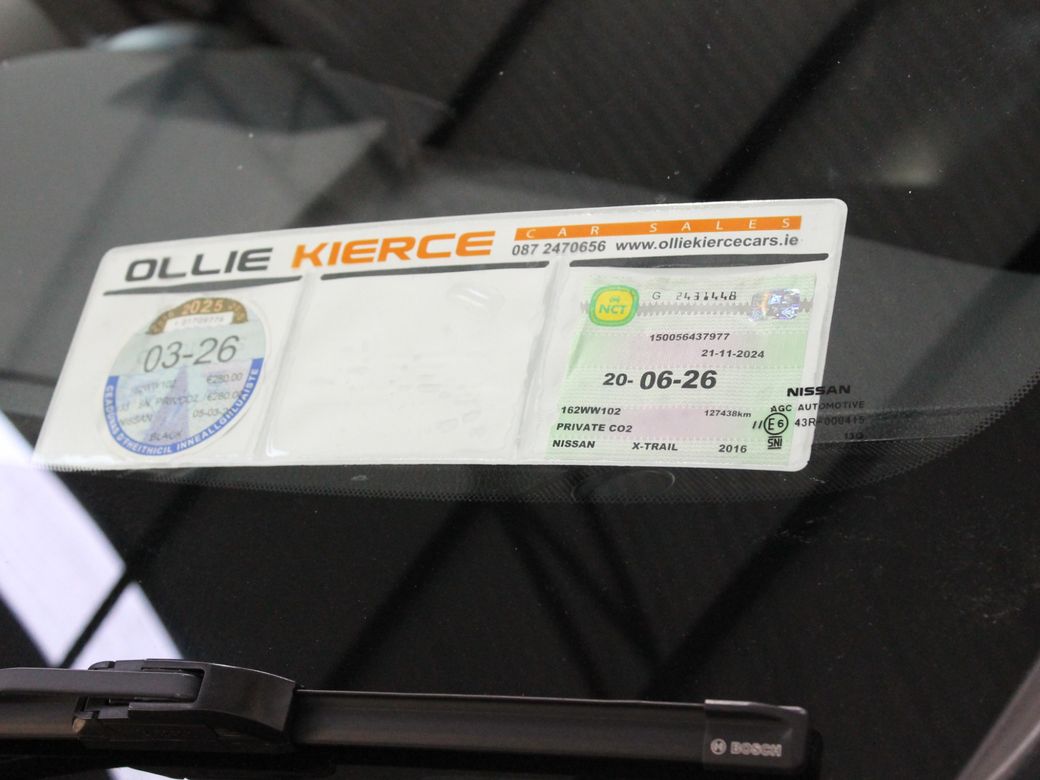 Nissan X-Trail SVE, Pan roof leather heated seats Reversing Camera Sold full serviced, valeted and guaranteed. Finance Arranged, apply on www.olliekiercecars.ie Part exchange welcome. Please contact Ollie or Ray on 087 247 0656 or sales@olliekiercecars.ie We recommend making an appointment to avoid disappointment. We would be delighted to assist you find your new car. Our postcode for directions is T45TF97, Ballintubber, Carrigtwohill, Co. Cork. Multiple Air Bags, Remote Central Locking, Side Impact Protection, 2 Keys Available, Daytime Running Lights, Engine Immobiliser, Isofix Points, Parking Assistance, Reversing Camera, Full Service History