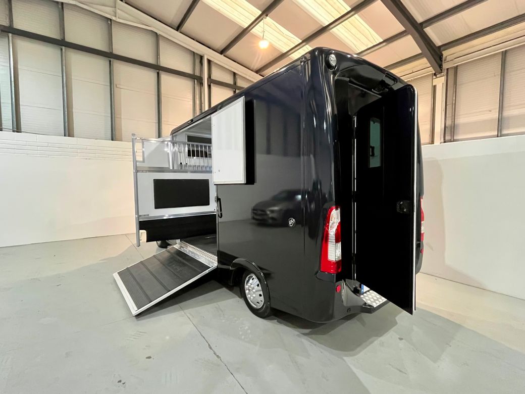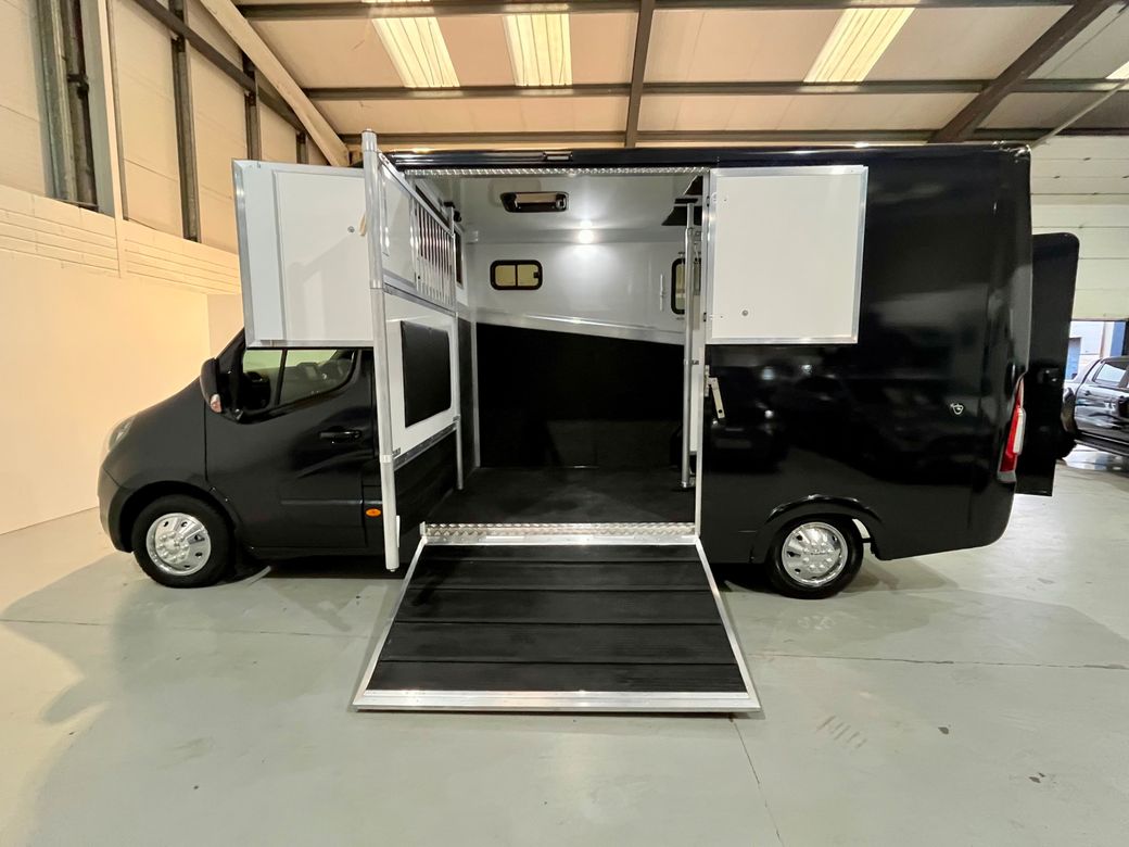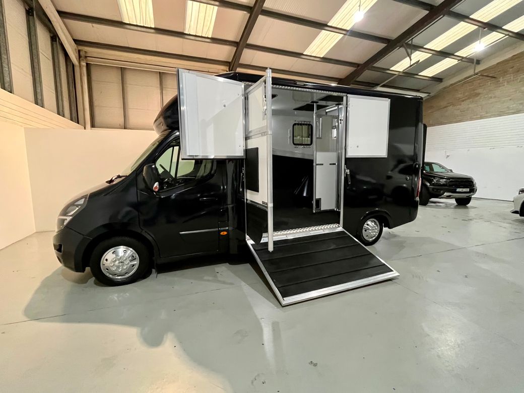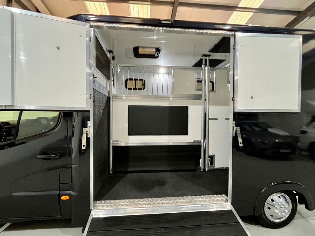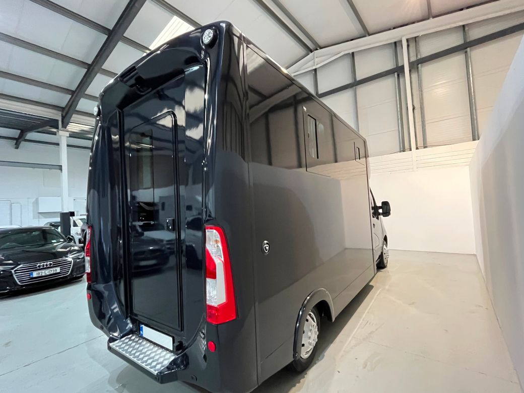 211 Opel Movano Horsebox Fresh conversion and never used Finished in Moonlight Blue with quilted faux leather seats Priced sensibly at €39950 all in with no additional vat to be paid. Finance available into personal profiles, sole traders, ltd companies or farms. Full dealer facilities Converted correctly with the Road Safety Authority and Motortax as a Horsebox / Equine Transporter for insurance purposes. Chassis details: • 2021 • 2.3 cdti engine (Renault Master engine) • 6 speed gearbox • 64500 miles • Bluetooth • Colour camera to horse area • Reverse camera • Reverse sensors • 12 months cvrt test Horse area: • Stallion partition • Reinforced bulkhead with thicker EVA board • Sealed single piece rubber floor • Reinforced back wall • Aluminium ramp • Roof padding • Roof ventilation • Internal LED lights • Bonded and tinted windows • Large over cab storage Rear area: • LED lighting • Two saddle poles • Two bridle books • Storage shelf • Hanging rail • Under seat storage Located in Ladytown business park Naas Co. Kildare Viewing by appointment Evening indoor well light viewing available Feel free to call or WhatsApp Connell at anytime.