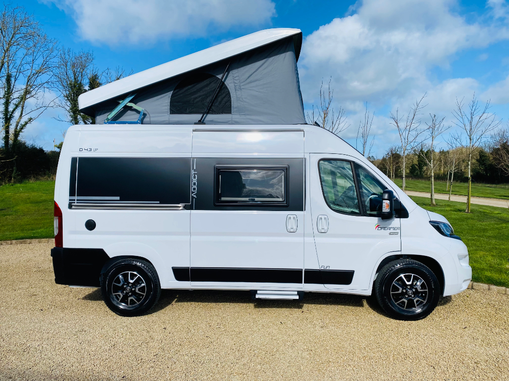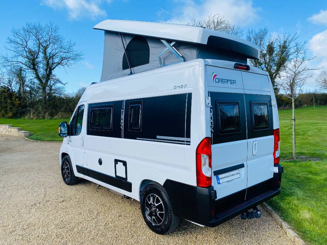 IN STOCK THIS 2022 - 222-D- REG RAPIDO DREAMER D 43 FUN 4 BERTH ,BASED ON A PEUGEOT BOXER 2.2 HDI 140BHP MANUAL L.H.D ,FIXED REAR BED AND POP UP ROOF OFFERING FOUR SLEEPING PLACES,BATHROOM AND SHOWER, 2 RING HOB, FRIDGE,SINK,SWIVEL SEATS,MICROWAVE,TV. STUNNING FINISH THROUGH OUT. THIS 4 BERTH CAMPER VAN IS IN NEW CONDITION IN SIDE AND OUT AND MUST BE SEEN , CALL 0599147619 TO ARRANGE A VIEWING AND A TEST DRIVE,€85,950 TRADE IN PRICE ..