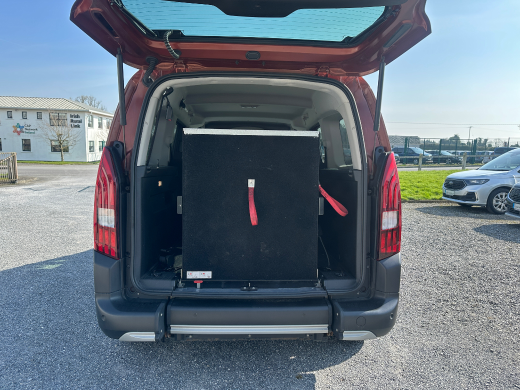 REF: 212G1968 Vehicle Location : Moate Showroom, Co. Westmeath Donal Murtagh Mobility Ltd are specialist suppliers and converters of vehicles for the disabled, located at two great locations with state-of-the-art facilities with expert advisors and engineers to assist you with your mobility needs. **Unit 1 Moate Business Park, Moate, Co Westmeath. Eircode: N37AH05** **New Premises Now Open, Athleague, Co Roscommon. Eircode: F42AE18** 221 Peugeot Rifter GT-Line L2 1.5 Hdi Manual finished in Sunset Copper metallic paint. This beautiful car is converted to accommodate 4 seated passenger along with a wheelchair occupant. Full lowered floor wheelchair access conversion in row three with a fold flat ramp. This car will be supplied just having a major service and upgrades to include the following: *New upgraded Cam Box and chain. *Timing Belt & Water Pump *Full Service *Tyres *Valet New NCT Extras: -1.5 Hdi Turbo Diesel 100Bhp -Irish built conversion and supplied car for greater peace of mind -Lowered floor conversion with lightweight ramp -4 point wheelchair securing system -Fold flat wheelchair ramp -Keyless Entry & Ignition -17 inch alloy wheels -Cruise control -Electric folding mirrors -Blue-tooth -Reversing Camera -Electric windows -Remote central locking -Air Conditioning -Warranty 6 Months For any further advice or questions, you might have please don’t hesitate to contact us: Roscommon office: 090 6663010 Moate office 090 6481050 Web: www.DMmobility.ie.