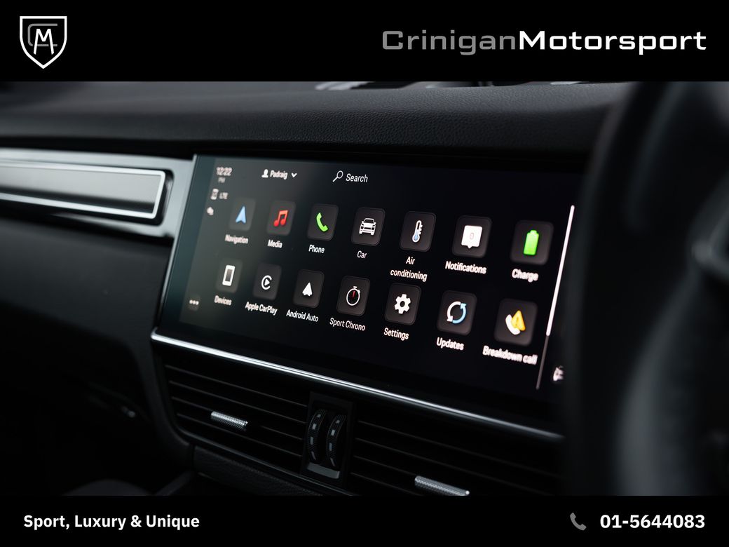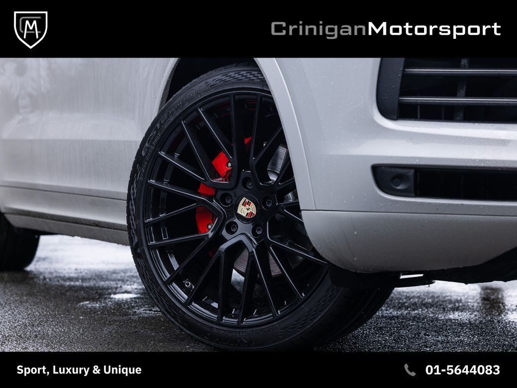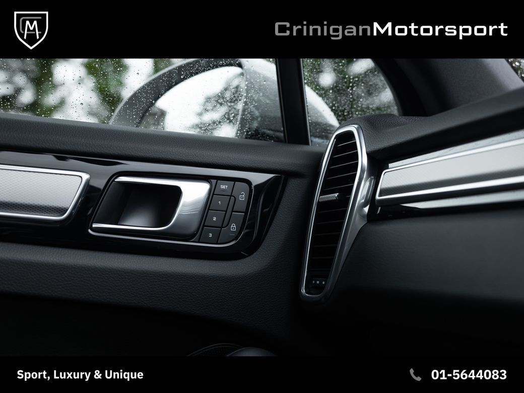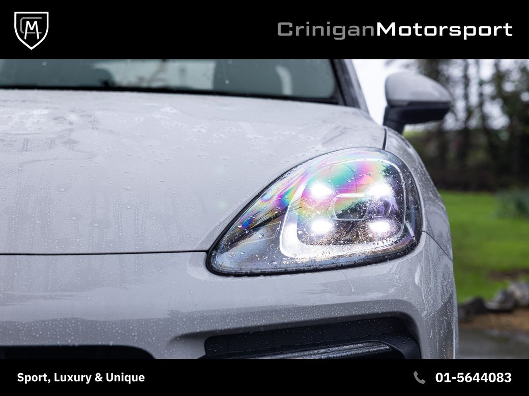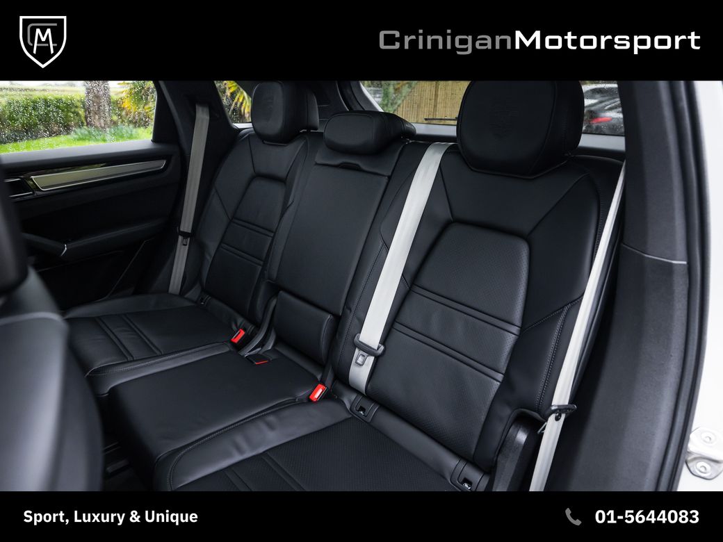 2023 Porsche Cayenne Platinum E Hybrid Presented in Chalk with Black Leather Upholstery & Brushed Aluminium over Piano Black Trim. Great spec on this Platinum Edition such as : 21 inch Cayenne Turbo Alloys in Satin Platinum. Adaptive air suspension with Porsche Active Suspension Management. Sport Chrono Pack with analogue clock. Panoramic Sunroof. LED headlights with Porsche Dynamic Light System. Surround View 360 degree camera. Front and Rear parking sensors. Power seats with 14-way electric adjustment and memory. Heated front & rear seats. Heated multi-function steering wheel. BOSE Surround Sound System. Porsche Communication Management with Navigation. Apple CarPlay & Smartphone integration. Ambient Lighting. Porsche Embossed Headrests front and rear. Rear comfort seats with 2+1 layout. Power Bootlid with hands-free opening. Cruise control with speed limiter. Privacy glass. High gloss black exterior trim and roof rails. Sport Exhaust finished in black & more.
