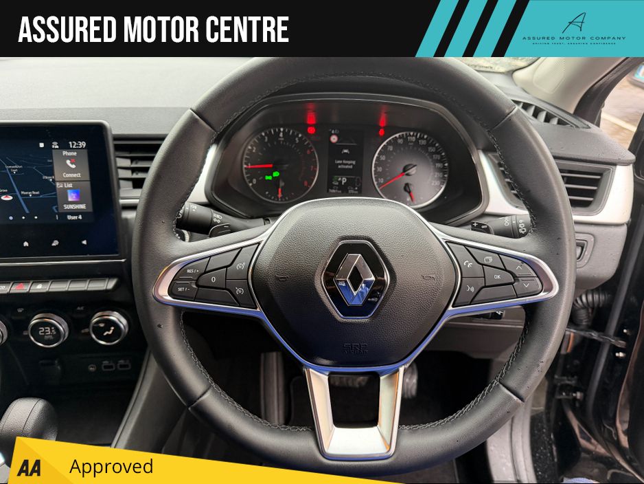 Assured Motor Centre are proud to bring you this automatic 2023 Renault Captur with a host of features including -17" Diamond cut alloy wheels -Rear parking sensors -Collision detection -Lane assist -Eco drive mode -Digital climate control -Bluetooth -Apple Carplay/Android Auto -Sat nav -Tinted windows -Automatic headlights -USB connectivity -Multifunction steering wheel At Assured Motor Centre, we believe buying a car should be an stress-free and honest experience. As a small, family-run business, we take pride in offering a personal touch that larger dealerships simply can't match. Every vehicle on our lot is carefully selected, serviced, and undergoes a comprehensive health check before its offered for sale so you can drive away with confidence and peace of mind. Whether you're looking for your first car, a reliable family vehicle, or an affordable upgrade, were here to help you find the right fit without pressure or gimmicks. Your satisfaction is our top priority. Driving trust, ensuring confidence. Central Locking, Electric Windows, Airbag, Privacy Glass, Multi-function steering wheel, Satellite Navigation, Traction Control, Metallic Paint, Parking Sensors, Bluetooth, Isofix, Active Safety Braking / City Brake / Collision Alert, Stop/Start Button, External Devices Connectivity, Cup holders, Remote boot/hatch/rear door release, Stability control. Central Locking, Parking Sensors, Traction Control, Collision Alert, Isofix Points, Lane Keeping Assistance, Rear Parking Sensors, Remote Door Release, Stability Control