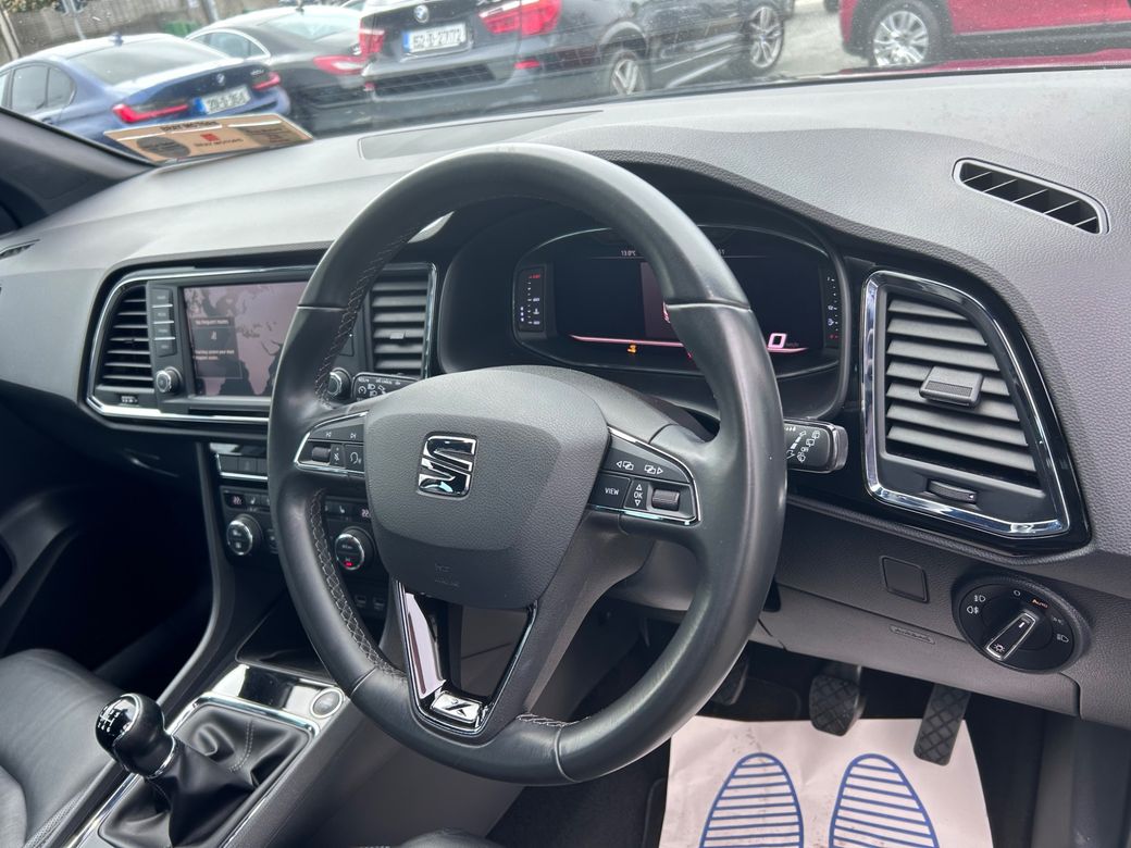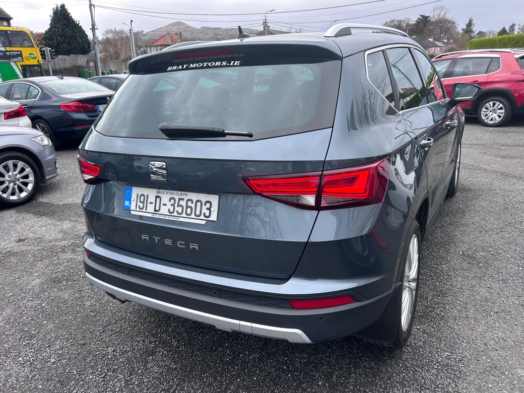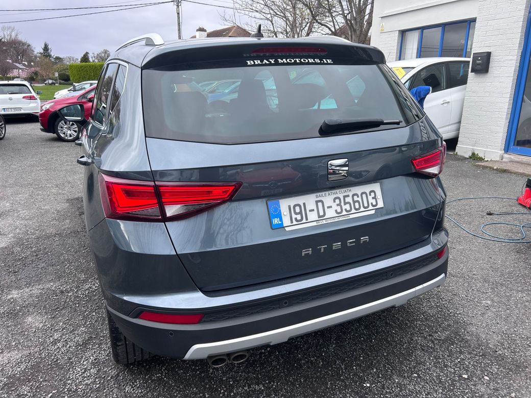 2019 Seat Ateca 1.5TSI Xcellence Top of the Range Model Finished in Grey Metallic Black Leather Sat Nav Parking Sensors Heated Front Seats Cruise Control Bluetooth Multi Function Steering Wheel Dual Zone Climate Control with Aircon Electric Windows Electric Mirors NCT 04/27 Road Tax Only €270 Per Year Excellent Condition Inside and Out This Car is an AA Approved Car. All of our cars come supplied with: NCT Serviced Minimum 3 Months Warranty Full Car History Check 12 Months AA Membership 12 Months Roadside Assistance 12 Months Roadside Recovery 101 Point AA Inspection Checklist Carried Out Trade Ins Accepted Straight sale price is €18,950 Trade in price is €19,950 Viewing by appointment Call for more details We are an AA Approved Dealer and we are based in Bray on the Dublin and Wicklow border, just 20 minutes from the N7 / M50 interchange. We are easily accessible from the M11/M50, A98DT89.Call us for details on 0873996666. Central Locking, EBD, Fog Lamps, Parking Sensors, Remote Central Locking, Traction Control, Brake Assist System, Automatic Wipers, Daytime Running Lights, Hill-Start Assist
