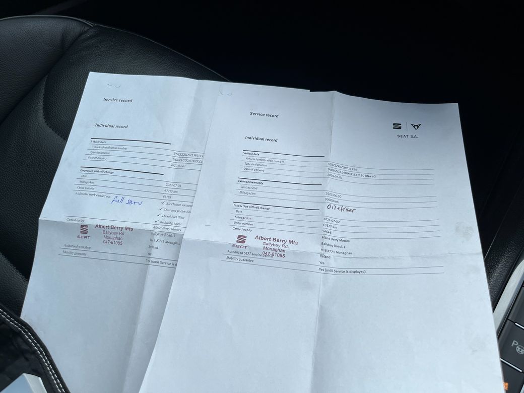 JUST ARRIVED!! This SEAT TARRACO 7 SEATER XCELLENCE 2.0 DIESEL 150BHP... In stunning condition inside and out.. A fantastic car to drive.. It comes with a huge spec including.. Call Andrew on 0877847012 or EMAIL andrew@evramotors.ie - Full Leather Seats - Heated Front and Rear Seats - Keyless Entry/Start - Reverse Camera - Parking Sensors - Adaptive Cruise Control - Android/Apple Carplay - Digital Drivers Display with Sat Nav - Sat Nav - Power Tailgate - Wireless Phone Charging - Bluetooth - Multi Functional Steering Wheel - Electric Windows - Air Con ***NEW NCT INCLUDED***TAX €270 PER YEAR*** Here at Evra Motors we have a friendly knowledgeable sales team with over 20 years experience in the business. We are proud to be an AA Approved dealer with peace of mind as standard. We aim to stock a wide range of over 300 carefully selected premium AA Approved used cars all sourced directly from main dealerships here in Ireland. We aim to supply all our cars at the most competitive prices in the country. Extended warranty available on certain makes and models. Delivery can be arranged throughout the country. Each of our retail cars comes with a detailed history report and fully serviced or health checked by our in house service team of mechanics, a valid NCT will be provided and every car will be valeted prior to collection. Tailored finance packages available. We are open 6 days a week. For more information on our cars please contact ANDREW ON 0877847012 or email andrew@evramotors.ie Due to a high turnover in stock we recommend that you contact our sales team to make sure the car is still available and to make an appointment.