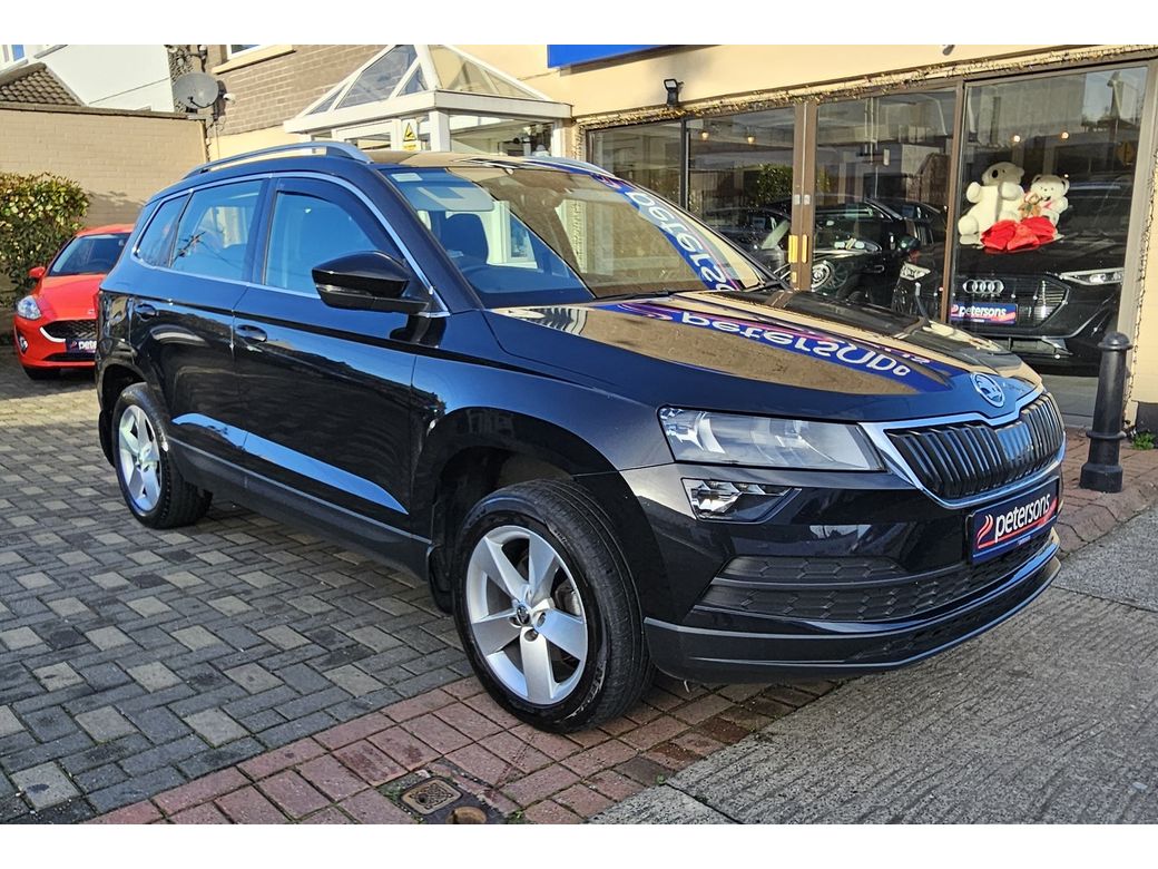 SKODA KAROQ AMBITION 2.0 TDI, BLACK WITH BLACK INTERIOR, DUAL ZONE CLIMATE CONTROL, TOUCHSCREEN MEDIA, APPLE CARPLAY, ANDROID AUTO, MIRRORLINK, BLUETOOTH, MULTIPLE USB-C CONNECTIONS, MULTIFUNCTION STEERING WHEEL, STOP/START BUTTON, ELECTRONIC HANDBRAKE, AUTOMATIC LIGHTS, DAYTIME LIGHTS, ELECTRIC WINDOWS AND MIRRORS, LUGGAGE COVER, ROOF RAILS, REMOTE CENTRAL LOCKING, ALLOY WHEELS. WELCOME TO PETERSONS - PETERSONS HAVE BEEN SELLING CARS SINCE 1970s FROM OUR LOCATION ON TIVOLI ROAD IN DUN LAOGHAIRE, WITH OUR VAST EXPERIENCE AND KNOWLEDGE ALL OUR CARS GO THROUGH A METICULOUS INSPECTION PROCESS, WE OFFER A VAST RANGE OF PRE-OWNED VEHICLES THAT ARE CHOSEN WITH OUR CUSTOMERS NEEDS IN MIND, CONTACT ANDY OR PATRICK @ SALES ON 01-2806917 TO ARRANGE A TEST DRIVE. Anti-Theft System, Central Locking, Multiple Air Bags, Parking Sensors, Remote Central Locking, Traction Control, Automatic Lights, Daytime Running Lights, Engine Immobiliser, Isofix Points, Rear Parking Sensors, Stability Control