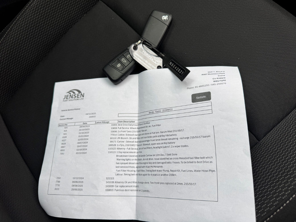 Just Arrived. This spotless 2022 Skoda Karoq 2.0 Tdi 115 BHP Ambition 5DR. One previous owner. Great Documented Service History and no expense was ever spared. A perfect family sized SUV which offers great versatility through its spacious cabin and large boot. Extremely efficient to run with its very economical 2.0 Diesel engine. The Ambition Model comes with a host of extras. Alloy Wheels, Cruise Control, Privacy Glass, Parking Sensors, Auto Lights, Auto Wipers, Multi Functional Steering Wheel, Electric Windows and Electric Mirrors are all standard just to list a few.................................Its supplied fully serviced, professionally valeted and with a warranty. At Beechlawn Motors Ltd we have over 15 years experience in supplying quality used vehicles. With over 80 Cars and Commercial in stock we have a vehicle to suit everyones needs. (Finance Available on a certain models). Beechlawn Motors Ltd, Huntsman Service Station (Maxol), Junction of the Long Mile Road and Naas Road. Dublin 12. Opening hours Monday - Friday 9.00 - 18.00 Saturday 10.00 - 14.00. Closed Sunday. After hours by appointment only. 01-4508514 or 086-8393233.