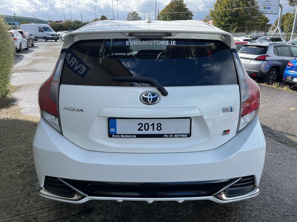 JUST ARRIVED!! This TOYOTA AQUA GR SPORT AUTOMATIC 1.5 PETROL.. In stunning condition inside and out.. A fantastic car to drive.. It comes with a huge spec including.. Call Mark for more info on Ph 083 303 6593 or email mark@evramotors.ie - GR Sport Interior and Exterior Styling - Half Leather Bucket Seats - Reverse Camera - Keyless Entry/Start - Digital Drivers Display - Bluetooth - Cruise Control - Alloys - Multi Functional Steering Wheel - Electric Windows - Air Con **NEW NCT INCLUDED** Here at Evra Motors we have a friendly knowledgeable sales team with over 20 years experience in the business. We are proud to be an AA Approved dealer with peace of mind as standard. We aim to stock a wide range of over 300 carefully selected premium AA Approved used cars all sourced directly from main dealerships here in Ireland. We aim to supply all our cars at the most competitive prices in the country. Extended warranty available on certain makes and models. Delivery can be arranged throughout the country. Each of our retail cars comes with a detailed history report and fully serviced or health checked by our in house service team of mechanics, a valid NCT will be provided and every car will be valeted prior to collection. Tailored finance packages available. We are open 6 days a week. For more information on our cars please contact Mark on Ph 083 303 6593 or email mark@evramotors.ie Due to a high turnover in stock we recommend that you contact our sales team to make sure the car is still available and to make an appointment.