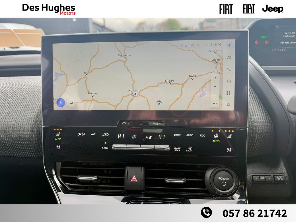 SOLD SOLD SOLD SOLD SOLD SOLD Contact COLIN for anymore info on 087 0541111. Toyota bZ4X 71KwH Vision model. 1 Owner from new. Toyota relax warranty. Trade ins welcome. Finance available. Contact COLIN for anymore info on 087 0541111. Established in 1987, Des Hughes Motors brings decades of experience to the motor trade. We proudly represent Fiat, Jeep, and Fiat Professional across Laois and the surrounding counties. Previously serving as the main Toyota dealer in Laois for nearly 30 years, we remain the only authorised Toyota repairer in the county. Whether it’s your first or tenth vehicle purchase from us, we’re committed to ensuring you drive away happy. We operate with a transparent pricing policy — each vehicle is price-checked weekly, taking into account mileage, condition, specification, and warranty to ensure you always get the best value. Every vehicle we sell goes through a comprehensive pre-sale process, including: Full history check Tyre inspection (4mm tread minimum) Full vehicle service Complete valet and clean Opening Hours: Monday–Friday: 9:00 AM – 5:30 PM Saturday: 9:30 AM – 2:00 PM Closed on Bank Holiday weekends Get in touch: 📞 057 86 21742 📧 sales@deshughes.ie 💻 Apply for finance anytime at www.deshughes.ie.