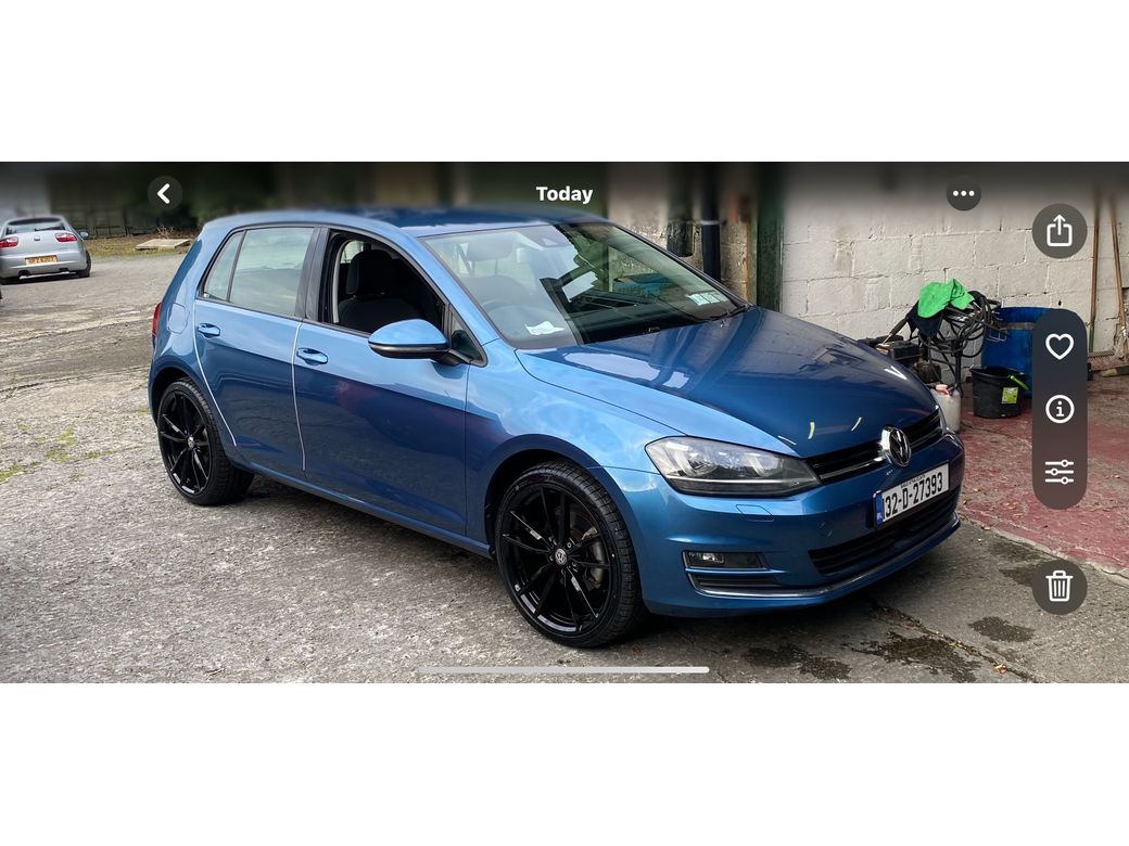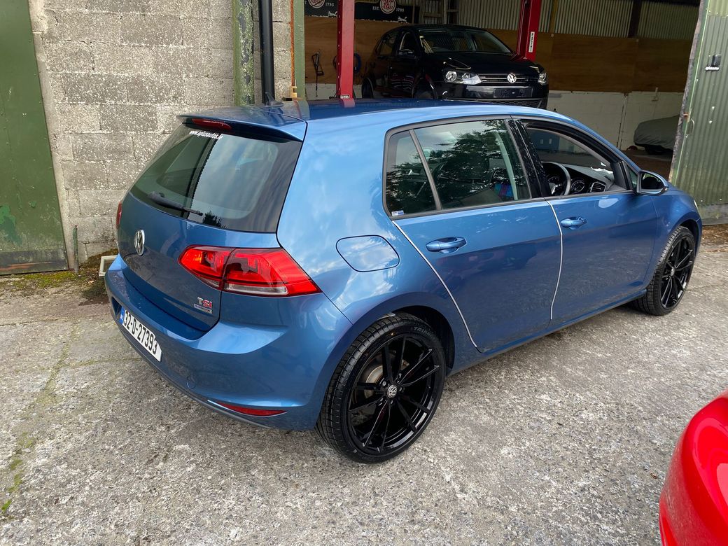 132d 1.4 TSI VW Golf Highline Fully Loaded Metallic Blue in Immaculate condition inside out 31000 km with full documented vw service history Been the highline this car is fully loaded with safety features lane Assit Collison alert Automatic handbrake , Brake Assit High Gloss interior with unmarked Grey suede sports seats alcantra DSG Gearbox reponsive and smooth Multi Function sterring wheel Cruise control Stop start technology 10.1 inch apple car play android radio included in price Reverse camera Sat nav Bluetooth Folding mirrors entering and exiting the car Spot lights and this car has the Full Hid light package beautiful car inside out no wear on inside or outside Car will be sold with fresh Nct and a full service 3 months warranty Contact Eddie for further information 0892091024 Strictly by appointment 19 inch alloys wheels optional extra (850) euros. Anti-Theft System, Central Locking, EBD, Fog Lamps, Multiple Air Bags, Rain Sensors, Remote Central Locking, Xenon Lights, Brake Assist System, 2 Keys Available, Automatic Lights, Automatic Wipers, Blind Spot Detection, Collision Alert, Daytime Running Lights, Isofix Points, Lane Departure Warning, New Tyres, Reversing Camera, LED Headlights, LED Intelligent Headlights, Service History, Full Service History