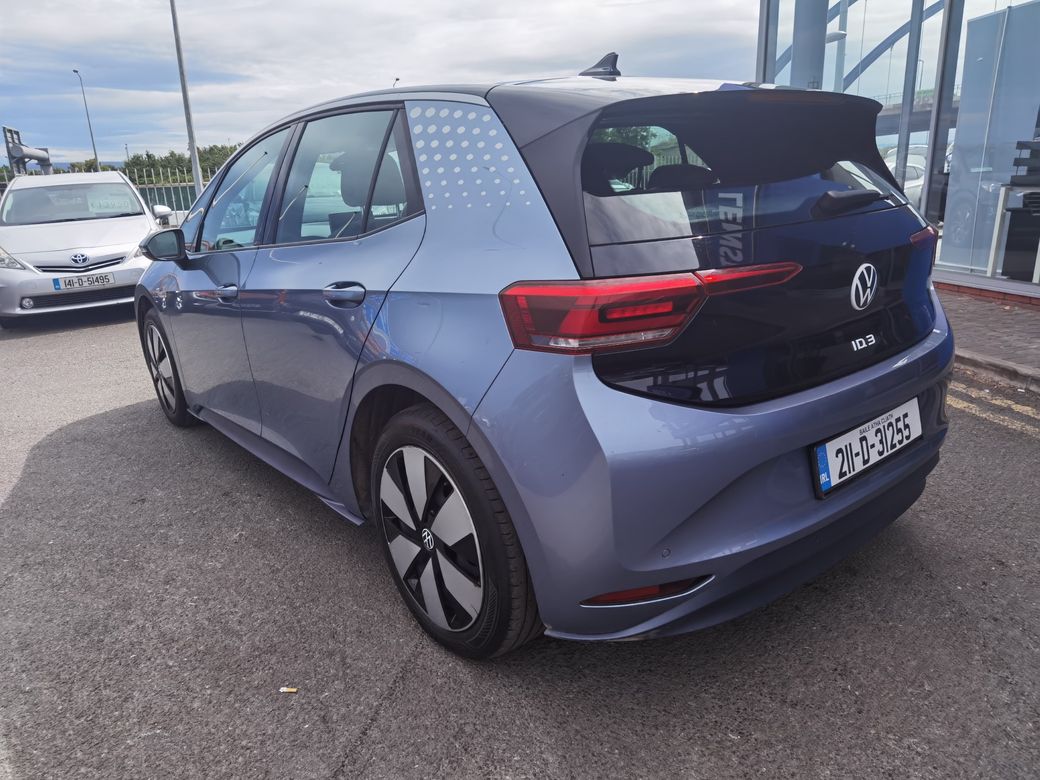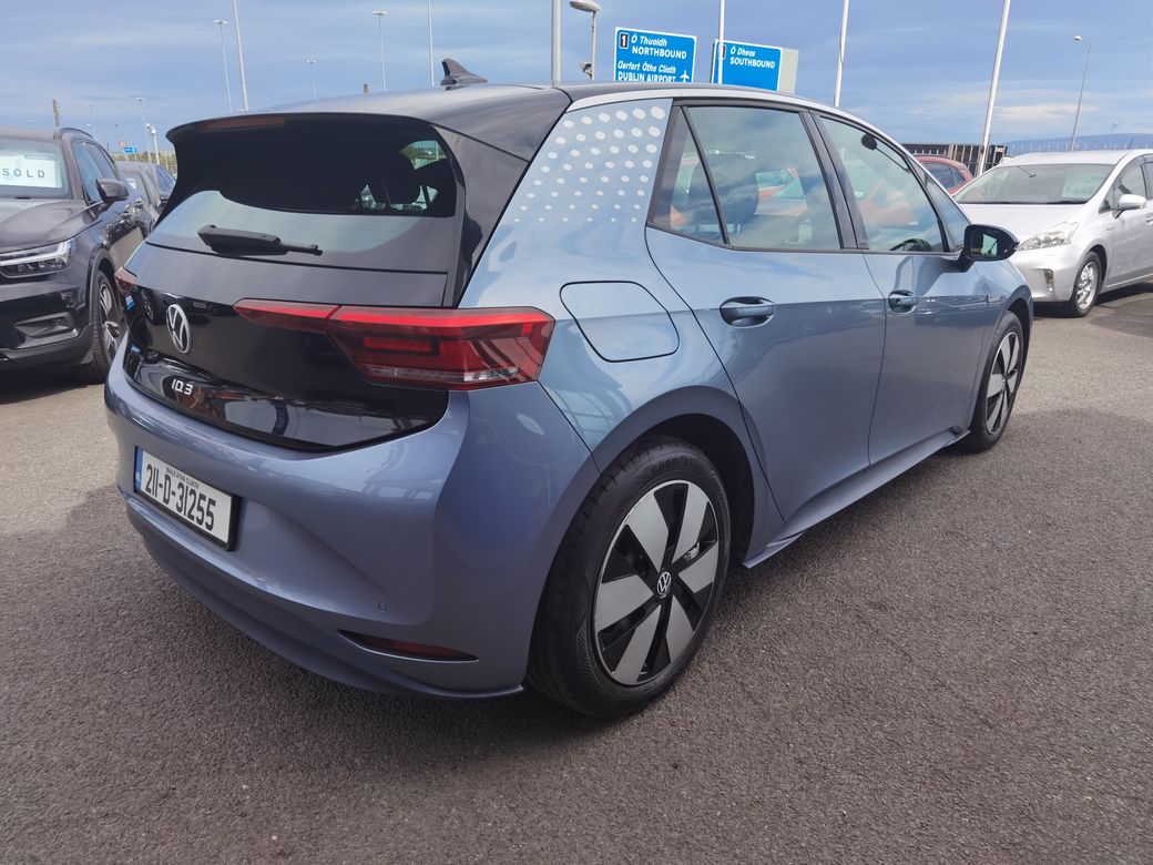 DRIVE AWAY TODAY IN THIS INCREDIBLE VALUE VOLKSWAGEN ID.3 58KWH PRO LIFE. THE MASSIVE SPECIFICATION INCLUDES: - FRONT AND REAR PARKING SENSORS - HEATED SEATS - HEATED STEERING WHEEL - ADAPTIVE CRUISE CONTROL - AUTOMATIC LIGHTS - ELECTRIC FOLDING WING MIRRORS - HEATED WING MIRRORS - APPLE CARPLAY - ANDROID AUTO - BLUETOOTH - USB-C - WIRELESS PHONE CHARGER - DUAL AIR CONDITIONING - SAT NAV - TOUCHSCREEN - BRAND NEW NCT ALL TRADE INS WELCOME. FINANCE AVAILABLE. DROP IN AND TAKE IT FOR A TEST-DRIVE TODAY OR CALL OUR FRIENDLY STAFF ON 01-492 6566 OR MOBILE ANYTIME ON 087-092 5525. NEW STATE OF THE ART SHOWROOMS LOCATED AT THE RED COW INTERCHANGE, NAAS ROAD, CLONDALKIN D22 HX68.