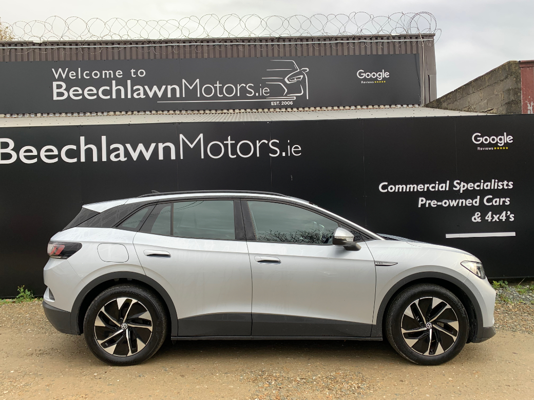 Just Arrived. This striking 2022 Volkswagen ID.4 Electric Family 77KWH 204 HP 5DR. One previous owner. In great condition throughout. Full Documented Service History. €120 Road Tax per Annum. The 77KWH battery has a WLTP range of up to 520km. Responsive to drive powered by its 204 BHP motor. The Life model comes with a host of extras. Heated Seats, Reverse Camera, Wireless Phone Charging Technology, Heated Seats, Cruise Control, Multi Functional Steering Wheel and Bluetooth are all standard just to list a few............................Its supplied fully serviced, professionally valeted and with a warranty. At Beechlawn Motors Ltd we have over 18 years experience in supplying quality used vehicles. With over 100 Cars and Commercial in stock we have a vehicle to suit everyones needs. (Finance Available on a certain models). Beechlawn Motors Ltd, Unit GA1, Sitecast Industrial Estate, Greenhills Road, Dublin 24, D24 YE2K. Opening hours Monday - Friday 8.00 - 17.00. Saturday 10.00 - 14.00. Closed Sunday. After hours by appointment only. 01-4508514 or 086-8393233.