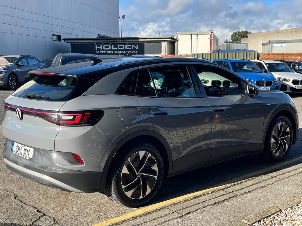 83,700 km · High Spec · Fully Electric SUV This 2023 VW ID.4 Pro combines advanced technology, premium comfort, and efficient electric driving. With a high-spec interior and a suite of modern safety and convenience features, it’s an ideal SUV for families or professionals seeking style, performance, and sustainability. Interior & Comfort * Grey leather and Alcantara interior * Heated front seats & heated steering wheel * Ambient interior lighting * Multifunctional steering wheel * Folding mirrors * Dual-zone climate control air conditioning * Wireless phone charger * 2 keys included Technology & Infotainment * Wide touchscreen multimedia system * Satellite navigation * Bluetooth connectivity * Apple CarPlay & Android Auto * Digital dashboard Driver Assistance & Safety * Adaptive cruise control * Voice control * Auto lights * Auto hold * Start/Stop button * Eco mode * Tyre pressure monitoring system * Parking sensors * Front & lane assist A premium, fully electric SUV offering comfort, style, and modern technology — a smart and sustainable choice for everyday driving. Here at Holden Motor Company we are a family run business with a friendly and knowledgeable sales team. We aim to stock a wide range of over 100 carefully selected premium used cars all sourced directly from main dealerships here in Ireland and the UK. We aim to supply all our cars at the most competitive prices in the country. Extended warranty available on certain makes and models. Delivery can be arranged throughout the country. Each of our retail cars comes with a detailed history report and fully serviced or health checked by a network of independent mechanics, a valid NCT and valeted prior to collection. Tailored finance packages available. We are open 6 days a week. For more information on our cars please contact our sales team on 01-4604434/0870923236 or email sales@holdenmotorcompany.ie Due to a high turnover in stock we recommend that you contact our sales team to make sure the car is still available and to make an appointment.