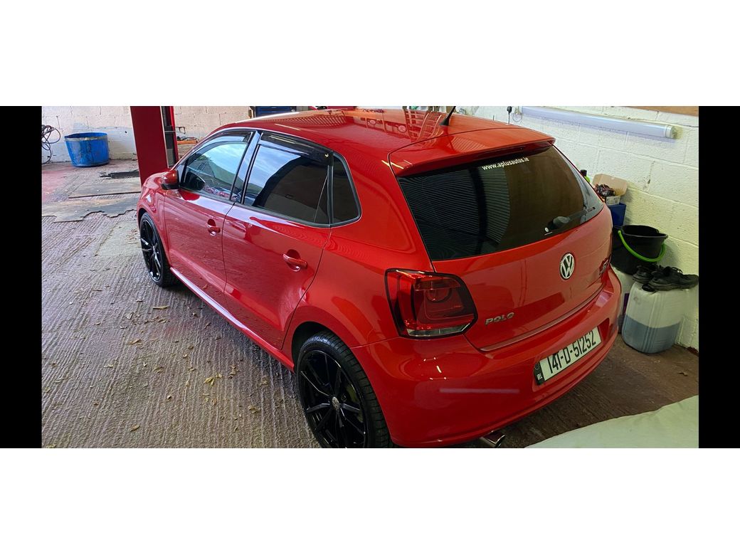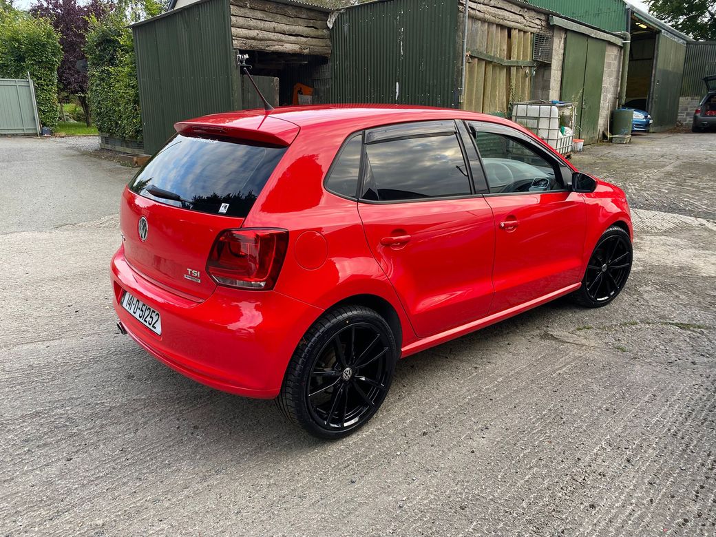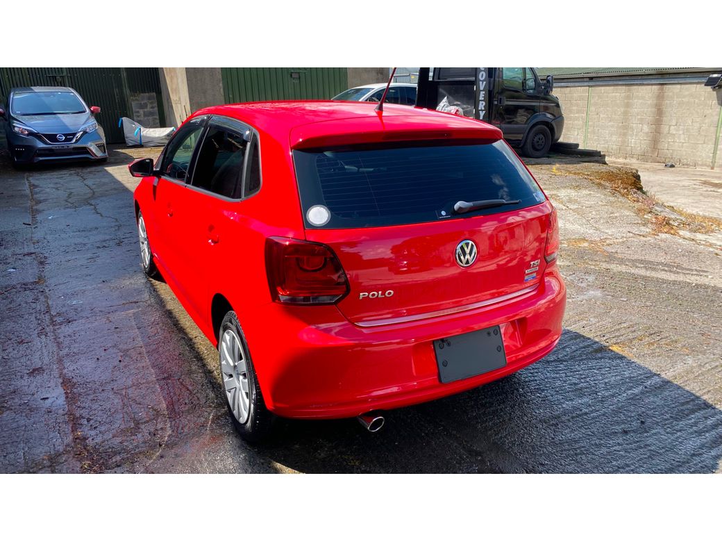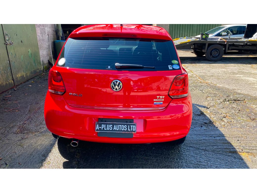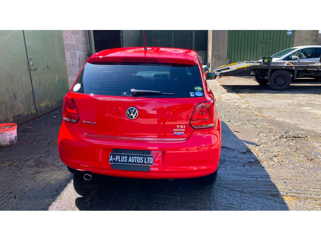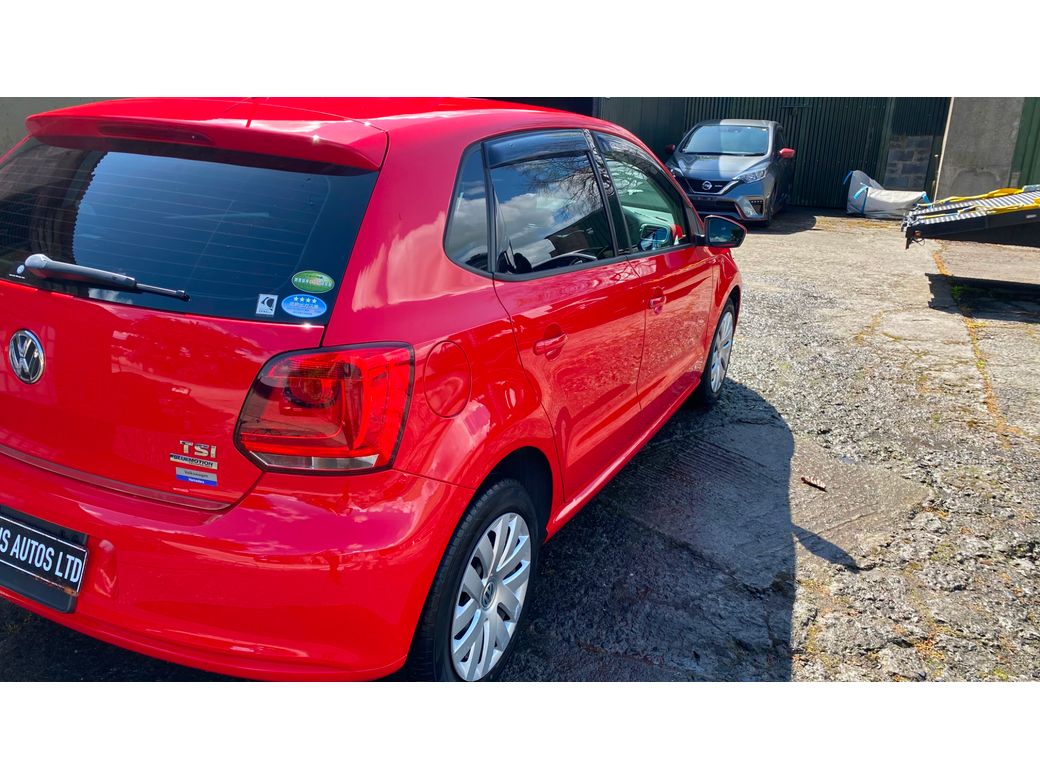 (Now Sold )2014 Bright Red VW Polo 1.2 TSI Bluemotion low mileage example 44600 km In Excelent condition inside and outside Fresh NCT on sale DSG auto Gearbox Electric window front and back folding mirrors Alloy wheels optional extra 850 euros. Central Locking, Multiple Air Bags, Traction Control, 2 Keys Available, Automatic Wipers, Daytime Running Lights, Isofix Points, Reversing Camera