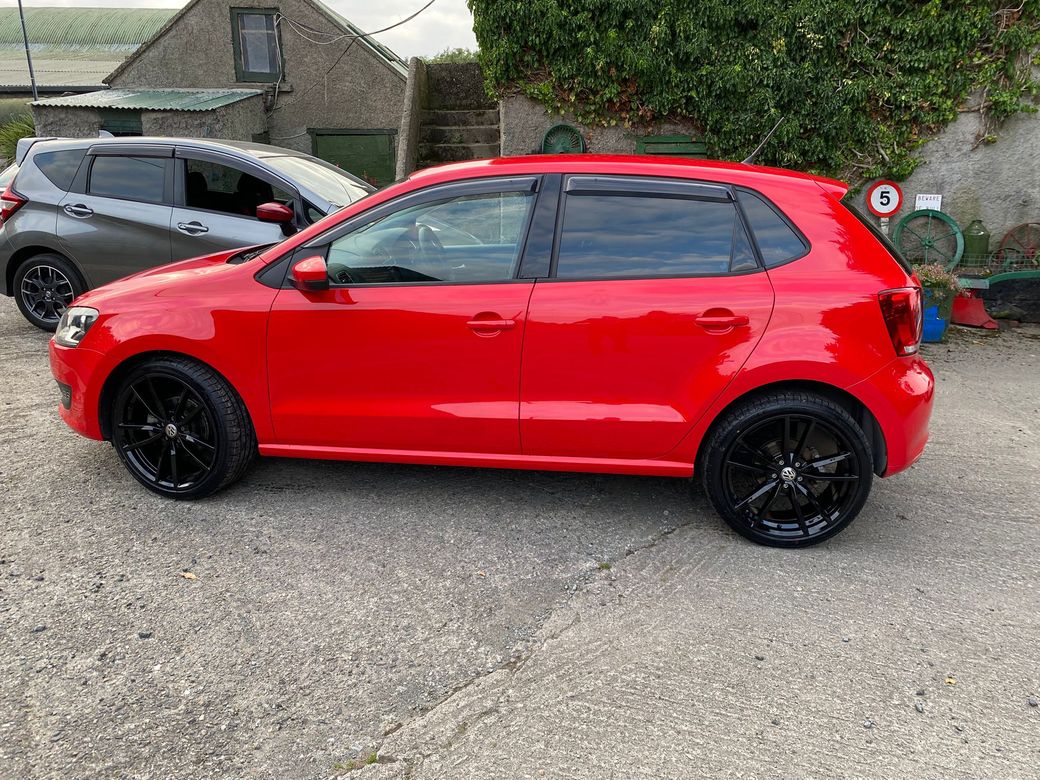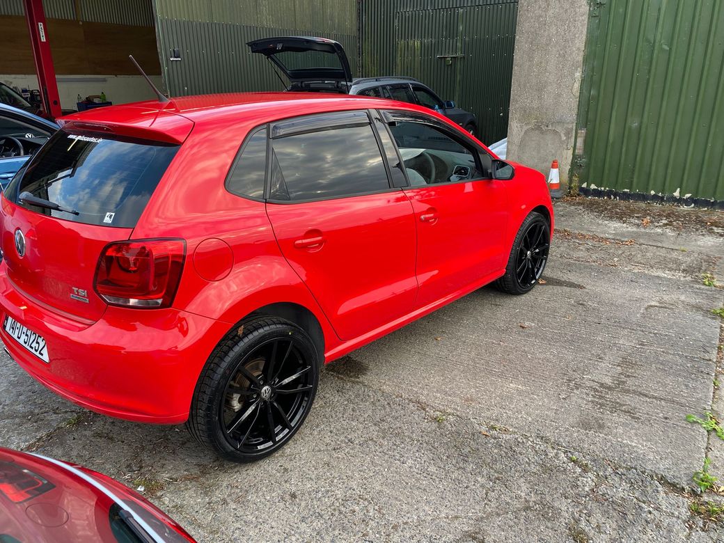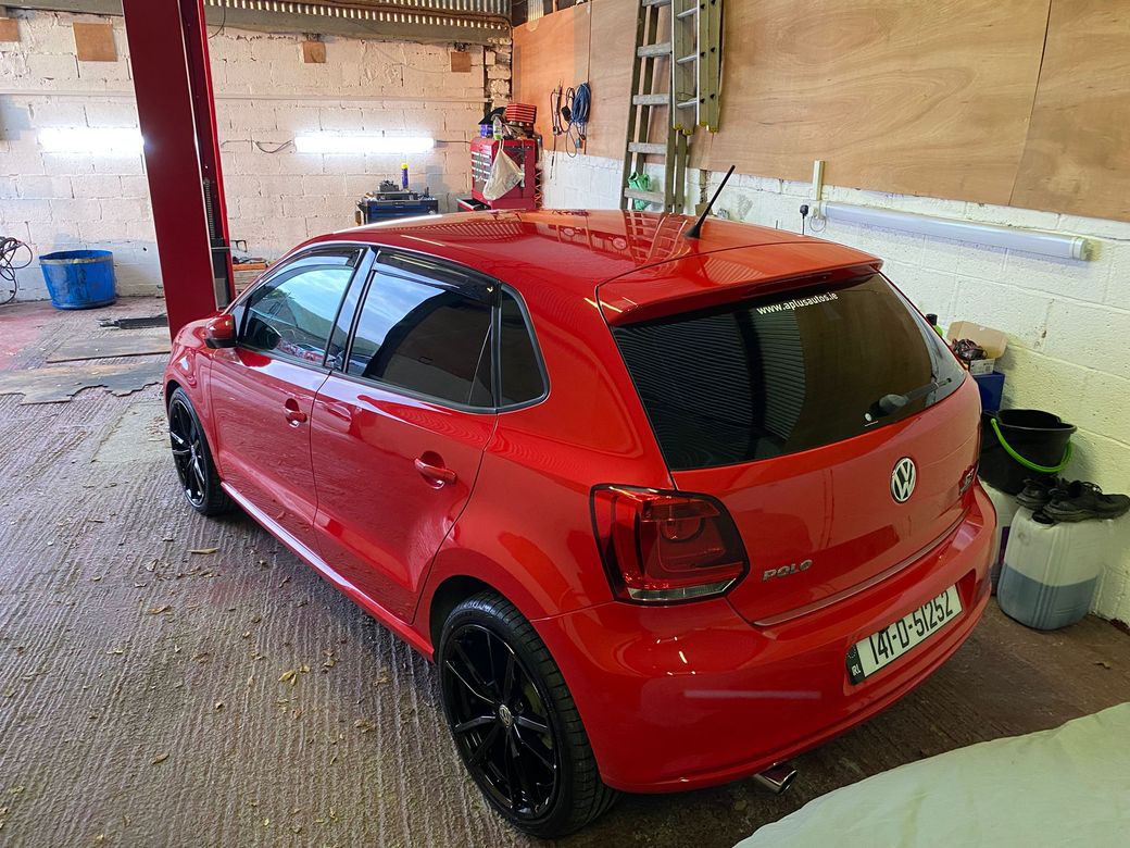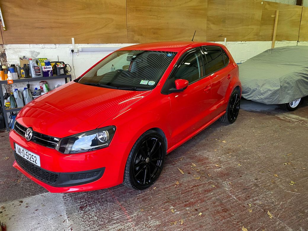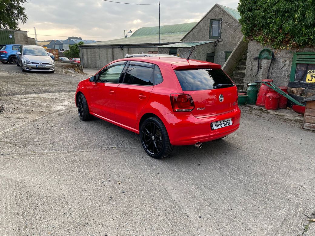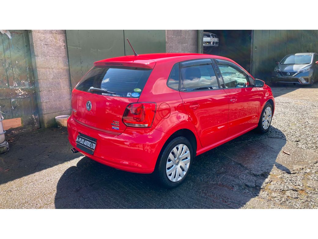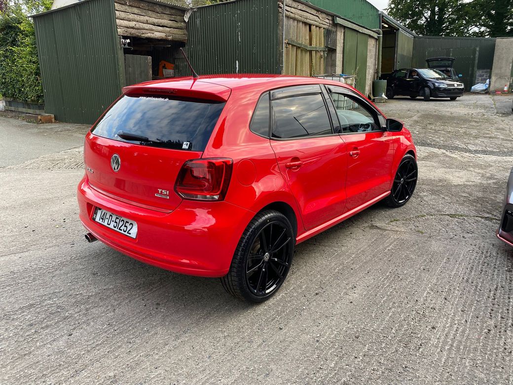 (Now Sold )2014 Bright Red VW Polo 1.2 TSI Bluemotion low mileage example 44600 km In Excelent condition inside and outside Fresh NCT on sale DSG auto Gearbox Electric window front and back folding mirrors Alloy wheels optional extra 850 euros. Central Locking, Multiple Air Bags, Traction Control, 2 Keys Available, Automatic Wipers, Daytime Running Lights, Isofix Points, Reversing Camera