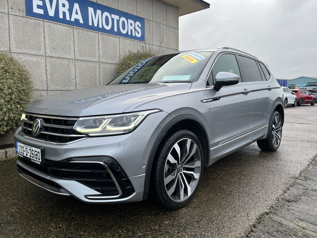 JUST ARRIVED!! This VW TIGUAN R-LINE 7 SEATER AUTOMATIC 2.0 TDI DIESEL.. In stunning condition inside and out.. A fantastic car to drive.. It comes with a huge spec including.. Call ANDREW RYAN for more info on Ph 0851259422 or email andrewryan@evramotors.ie - R-Line Interior and Exterior Styling - Half Leather Seats - Heated Seats and Steering Wheel - Digital Drivers Display with Sat Nav - Reverse Camera - Parking Sensors - Android/Apple Carplay - Adaptive Cruise Control - Sat Nav - Media Touch Screen - Air Con - Bluetooth - Multi Function Steering Wheel - Power Tailgate - Rear Seat Tray Tables ***TAX €280 PER YEAR*** Here at Evra Motors we have a friendly knowledgeable sales team with over 20 years experience in the business. We are proud to be an AA Approved dealer with peace of mind as standard. We aim to stock a wide range of over 300 carefully selected premium AA Approved used cars all sourced directly from main dealerships here in Ireland. We aim to supply all our cars at the most competitive prices in the country. Extended warranty available on certain makes and models. Delivery can be arranged throughout the country. Each of our retail cars comes with a detailed history report and fully serviced or health checked by our in house service team of mechanics, a valid NCT will be provided and every car will be valeted prior to collection. Tailored finance packages available. We are open 6 days a week. For more information on our cars please contact ANDREW RYAN on Ph 0851259422 or email andrewryan@evramotors.ie Due to a high turnover in stock we recommend that you contact our sales team to make sure the car is still available and to make an appointment.