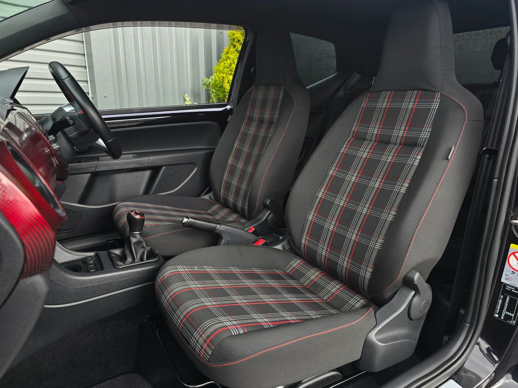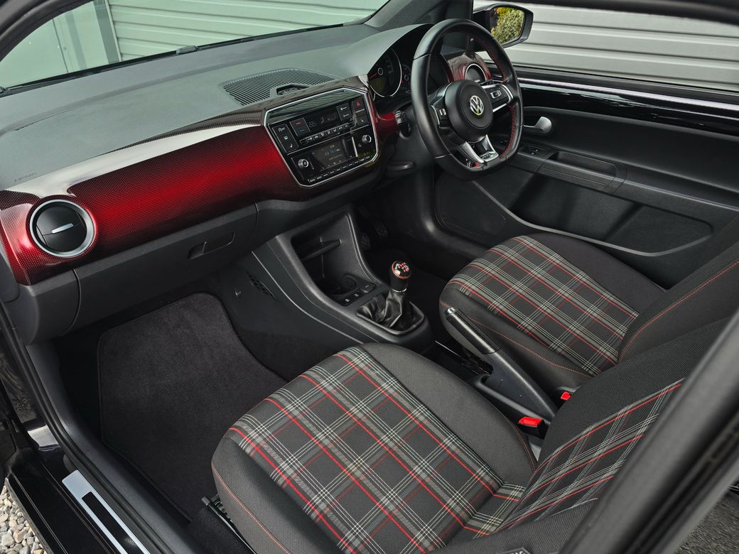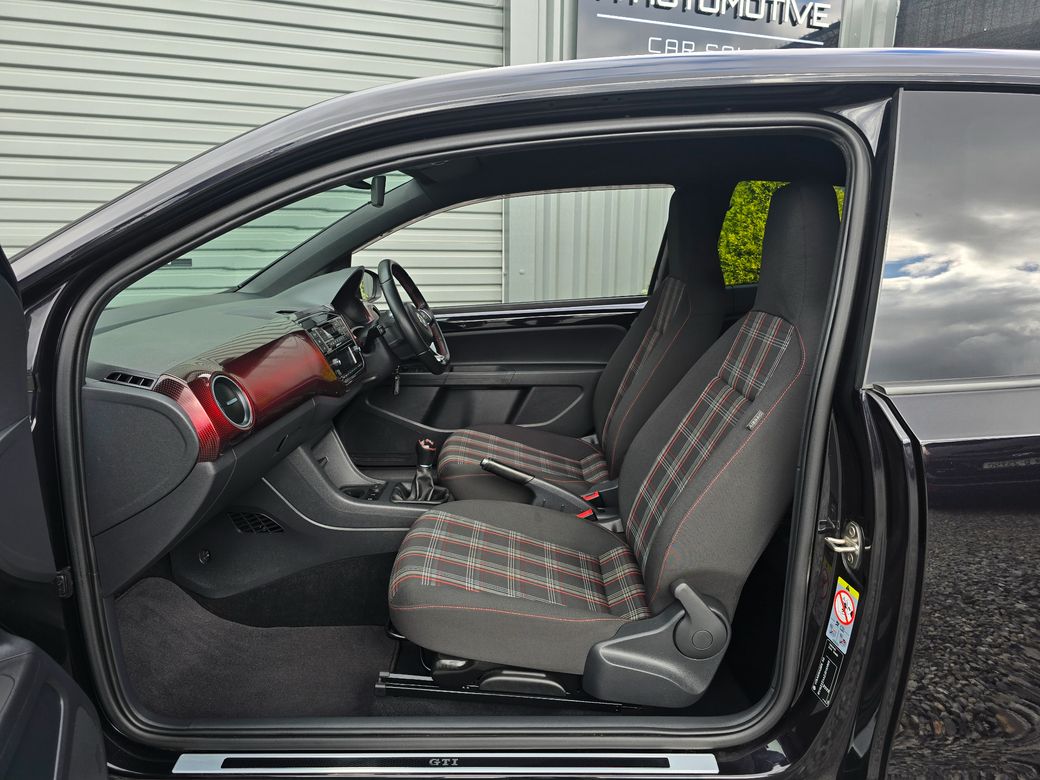 - Volkswagen Up! 1.0 GTI - 6 Speed manual TSI 113bhp - Finished in beautiful Black pearl - Exclusive 17inch Oswald alloys - Honeycomb grill with GTI red strip - Duck tail roof top boot spoiler - Rear bumper low defuser & side skirts - Front foglights - Rear privacy glass & wind deflectors - Rear parking sensors with park assist - Tartan interior trim with heated seats - Ambiente lightning with 2D pixels dash - 5inch color DAB Bluetooth audio system - Flat bottom leather steering wheel - Multi function steering wheel - Leather gearknob & handbrake - Heated electrical folding mirrors - Electric windows & Auto lights - Remote central locking with X1 Key - Full service & Multi-point check completed - Exterior & interior detailing completed - Full motor history report available - Personal walk-around video available - SIMI Approved Dealer - 5-Star Rated Dealer ⭐⭐⭐⭐⭐ - Viewings by Appointment Only📍.