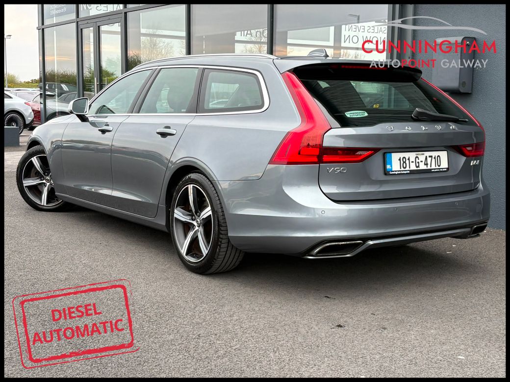 2018 (181) Volvo V90 D5 (225BHP) All Wheel Drive R-Design Pro in Osmium Grey with Charcoal Leather. Supplied by ourselves to its previous owner this V90 is a rare All Wheel Drive model with the more powerful D5 235BHP engine. Features include Winter Package [Heated Steering Wheel // Heated Front Windscreen // Heated Front Seats // Heated Washer Nozzles // Headlight Cleaning System] -- Adaptive Cruise Control with Pilot Assist -- Harmon Kardon Sound System with 10 Speakers/330W Output -- Sensus Navigation -- Rear Park Assist -- Power Operated Tailgate -- Road Sign Information Display -- Lane Keeping Aid -- Autofolding Heated Power Door Mirrors -- CleanZone Air Quality System & Pollen Filter -- 2-Zone Electronic Climate Control -- Front LED Foglights -- Power Folding Rear Headrests -- Power Folding Rear Seat Backrest From Tailgate Opening -- 18-inch 5 Double Spoke Alloy Wheels -- Tempa Spare Wheel -- Lowered Sports Chassis -- Hill Start Assist -- Perforated Leather Steering Wheel -- Integrated Roof Rails -- Anti-Theft Alarm System. This car can be reserved on our website (search Cunningham Autopoint if viewing off our website) for 48 hours allowing to time to travel and see the car with the assurance that the car will not be sold in the interim. Reservation fee is refundable if no deal is concluded or if you do not manage to come within the 48-hours. This car will be fully serviced prior to sale and comes complete with a 12 months / 20,000km warranty with 12 Months AA Premium Assistance. To discuss this car further please call into our showroom, phone us on 091 383000 or send us an online enquiry -- You can also reserve this car for 48 hours on our website -- Due to fast stock turnaround we recommend phoning in advance of travelling to check if the car of your choice is available -- We are an independently owned and operated dealership and our highly experienced team have over 100 years of combined motor industry experience.